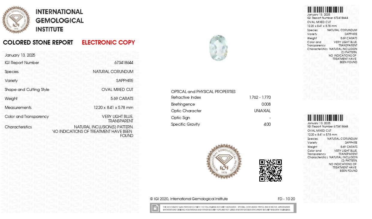 Buy one beautiful transparent 5.69 Carat/ 6.25 Ratti Original Blue Sapphire with the dimension of 12.20 x 8.41 x 5.78 mm. It has a oval shape, and a clarity grade of eye clean (evaluated at eye level), good intense color intensity, and an excellent polish. The origin of this Blue Sapphire (Neelam) is Sri-Lanka(Ceylon). This real blue sapphires is unheated & untreated and certified from IGI Govt. Lab.