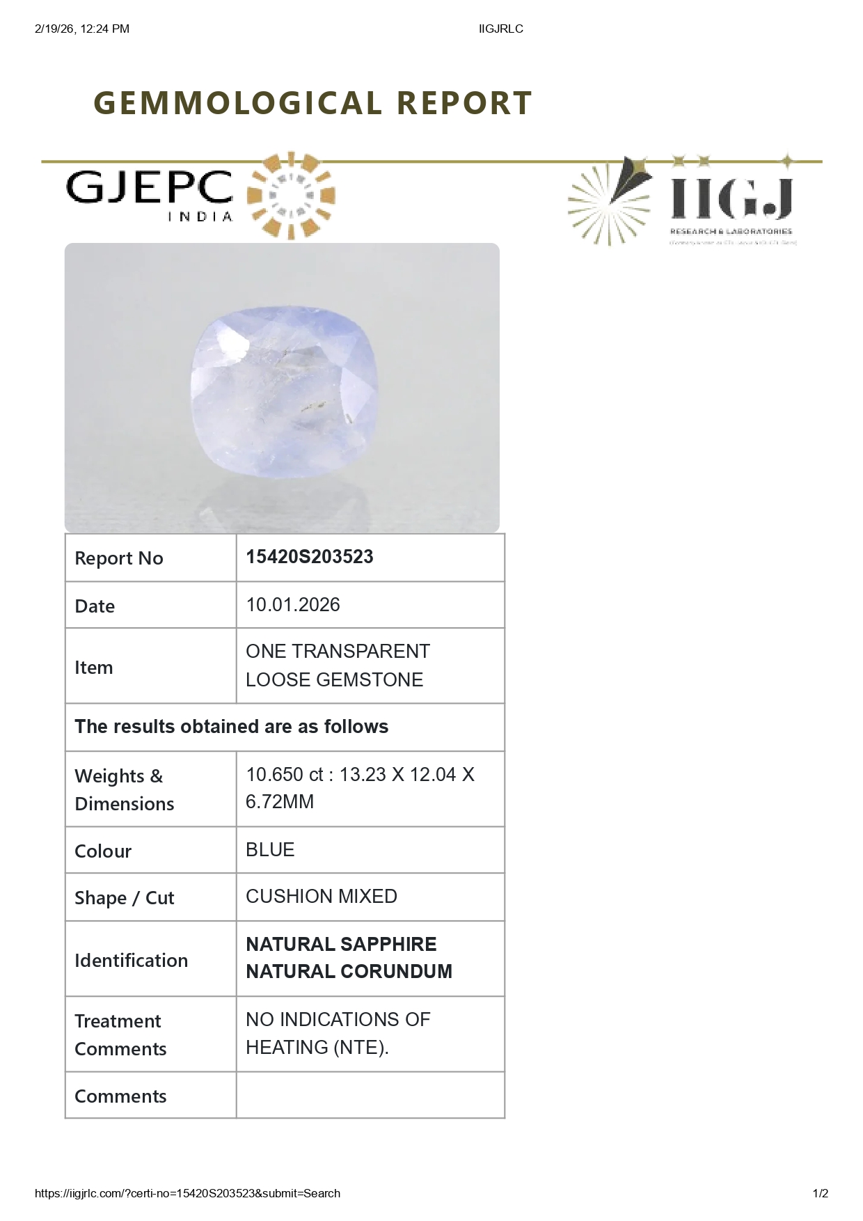 Buy one beautiful 10.65 carat/ 11.70 ratti pure blue sapphire.It has a cushion shape and a clarity grade of clean (evaluated at eye level), good intense color intensity. The origin of this neelam stone is sri-lanka(ceylon). This real blue sapphires is unheated & untreated and certified from IIGJ goverment lab.