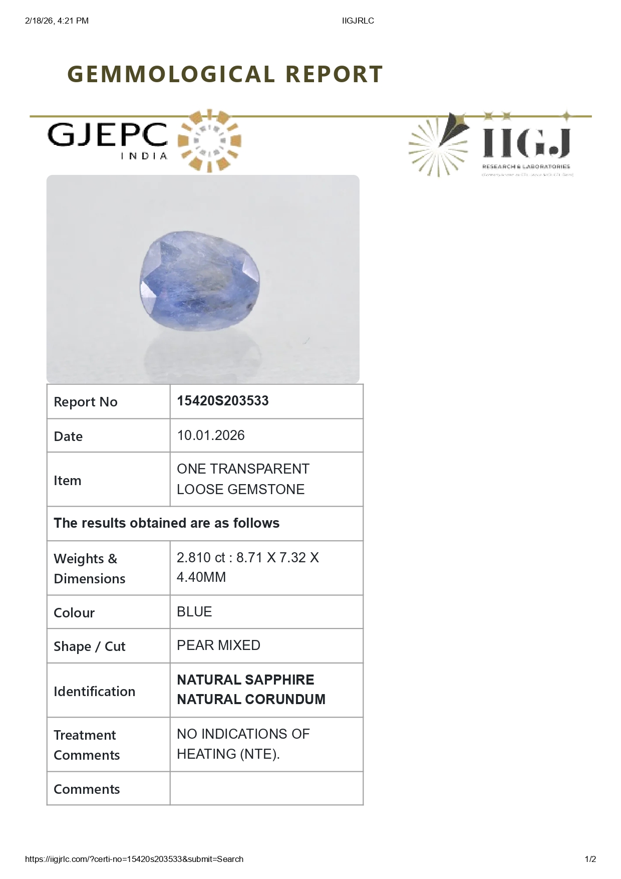 Buy one beautiful 2.81 carat/ 3.09 ratti pure blue sapphire.It has a cushion shape and a clarity grade of clean (evaluated at eye level), good intense color intensity. The origin of this neelam stone is sri-lanka(ceylon). This real blue sapphires is unheated & untreated and certified from IIGJ goverment lab.