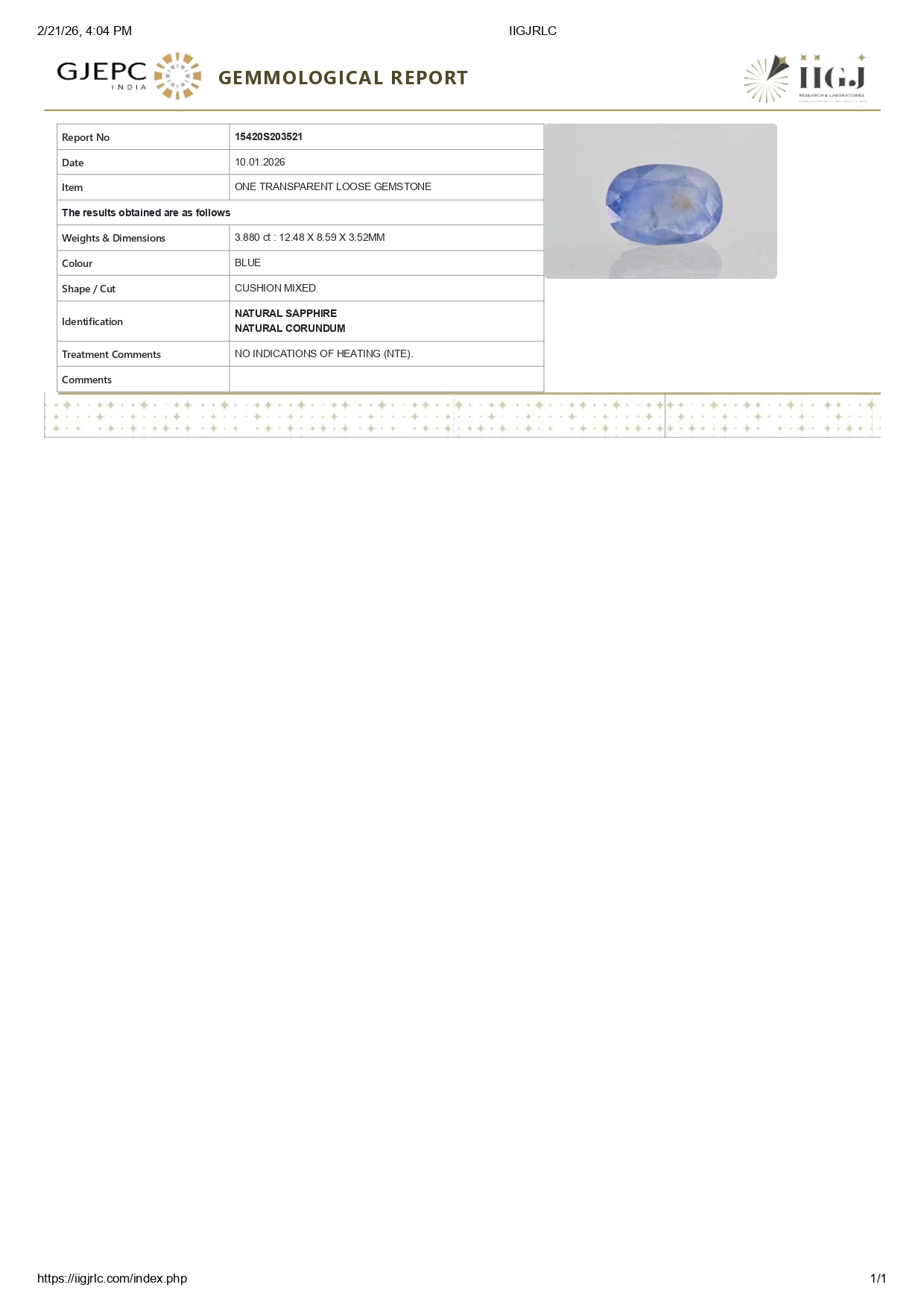 Buy one beautiful 3.88 carat/ 4.26 ratti pure blue sapphire.It has a cushion shape and a clarity grade of clean (evaluated at eye level), good intense color intensity. The origin of this neelam stone is sri-lanka(ceylon). This real blue sapphires is unheated & untreated and certified from IIGJ goverment lab.