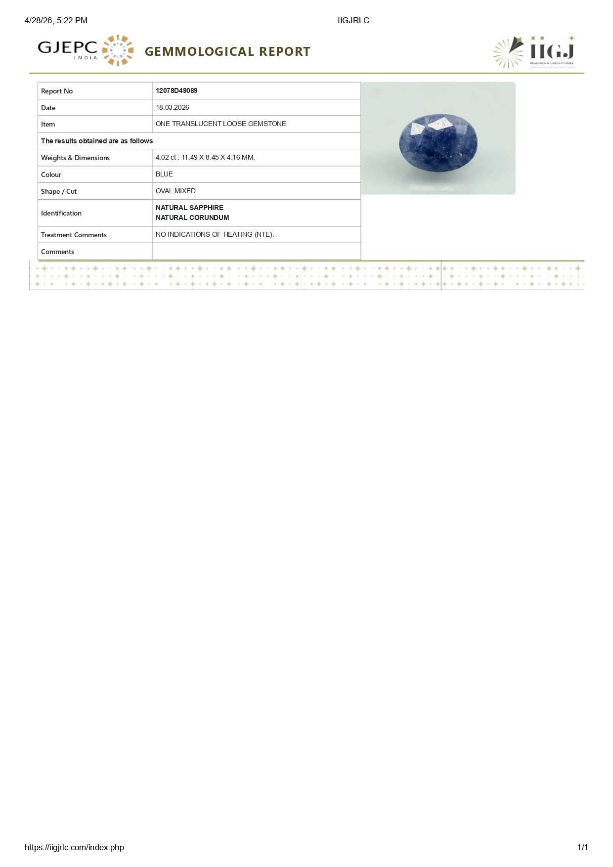 Buy one beautiful 4.02 carat/ 4.42 ratti pure blue sapphire.It has a oval shape and a clarity grade of clean (evaluated at eye level), good intense color intensity. The origin of this neelam stone is sri-lanka(ceylon). This real blue sapphires is unheated & untreated and certified from IIGJ goverment lab.