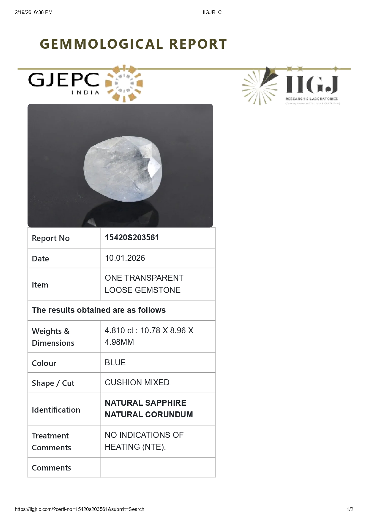 Buy one beautiful 4.81 carat/ 5.24 ratti pure blue sapphire.It has a cushion shape and a clarity grade of clean (evaluated at eye level), good intense color intensity. The origin of this neelam stone is sri-lanka(ceylon). This real blue sapphires is unheated & untreated and certified from IIGJ goverment lab.