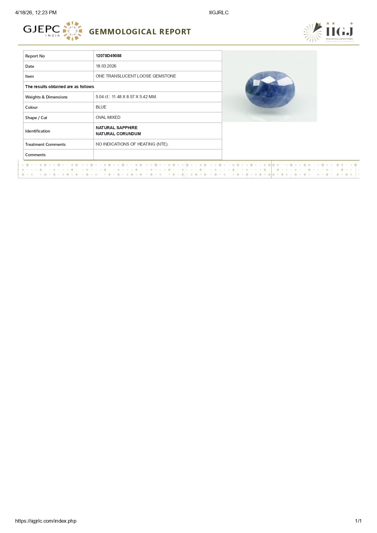 Buy one beautiful 5.04 carat/ 5.54 ratti pure blue sapphire.It has a oval shape and a clarity grade of clean (evaluated at eye level), good intense color intensity. The origin of this neelam stone is sri-lanka(ceylon). This real blue sapphires is unheated & untreated and certified from IIGJ goverment lab.