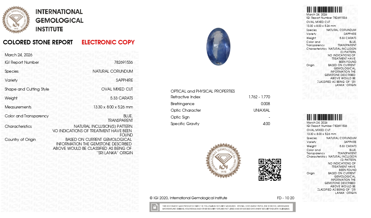 Buy one beautiful 5.33 carat/ 5.86 ratti pure blue sapphire.It has a oval shape and a clarity grade of clean (evaluated at eye level), good intense color intensity. The origin of this neelam stone is sri-lanka(ceylon). This real blue sapphires is unheated & untreated and certified from IGI goverment lab.