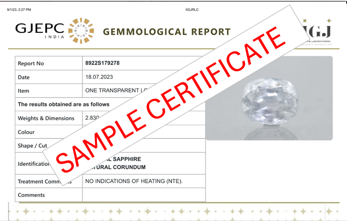 Buy one beautiful translucent 5.40 carat/ 5.93 ratti pure blue sapphire.It has a Oval shape and a clarity grade of eye clean (evaluated at eye level), good intense color intensity. The origin of this neelam stone is sri-lanka(ceylon). This real blue sapphires is unheated & untreated and certified from IIGJ goverment lab.