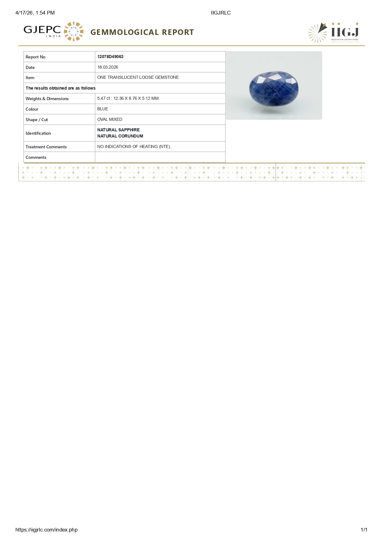 Buy one beautiful 5.47 carat/ 6.01 ratti pure blue sapphire.It has a oval shape and a clarity grade of clean (evaluated at eye level), good intense color intensity. The origin of this neelam stone is sri-lanka(ceylon). This real blue sapphires is unheated & untreated and certified from IIGJ goverment lab.
