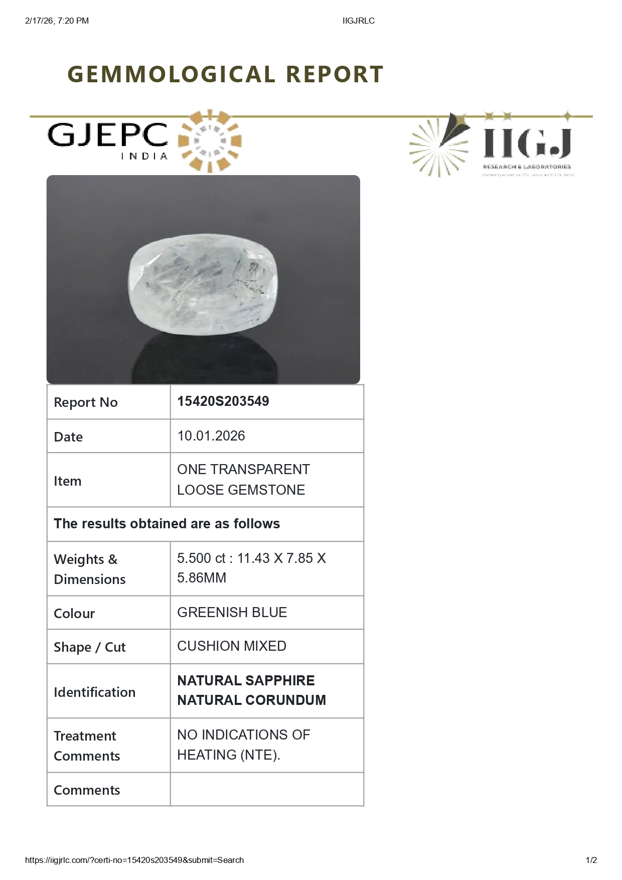 Buy one beautiful 5.50 carat/ 6.04 ratti pure blue sapphire.It has a cushion shape and a clarity grade of clean (evaluated at eye level), good intense color intensity. The origin of this neelam stone is sri-lanka(ceylon). This real blue sapphires is unheated & untreated and certified from IIGJ goverment lab.