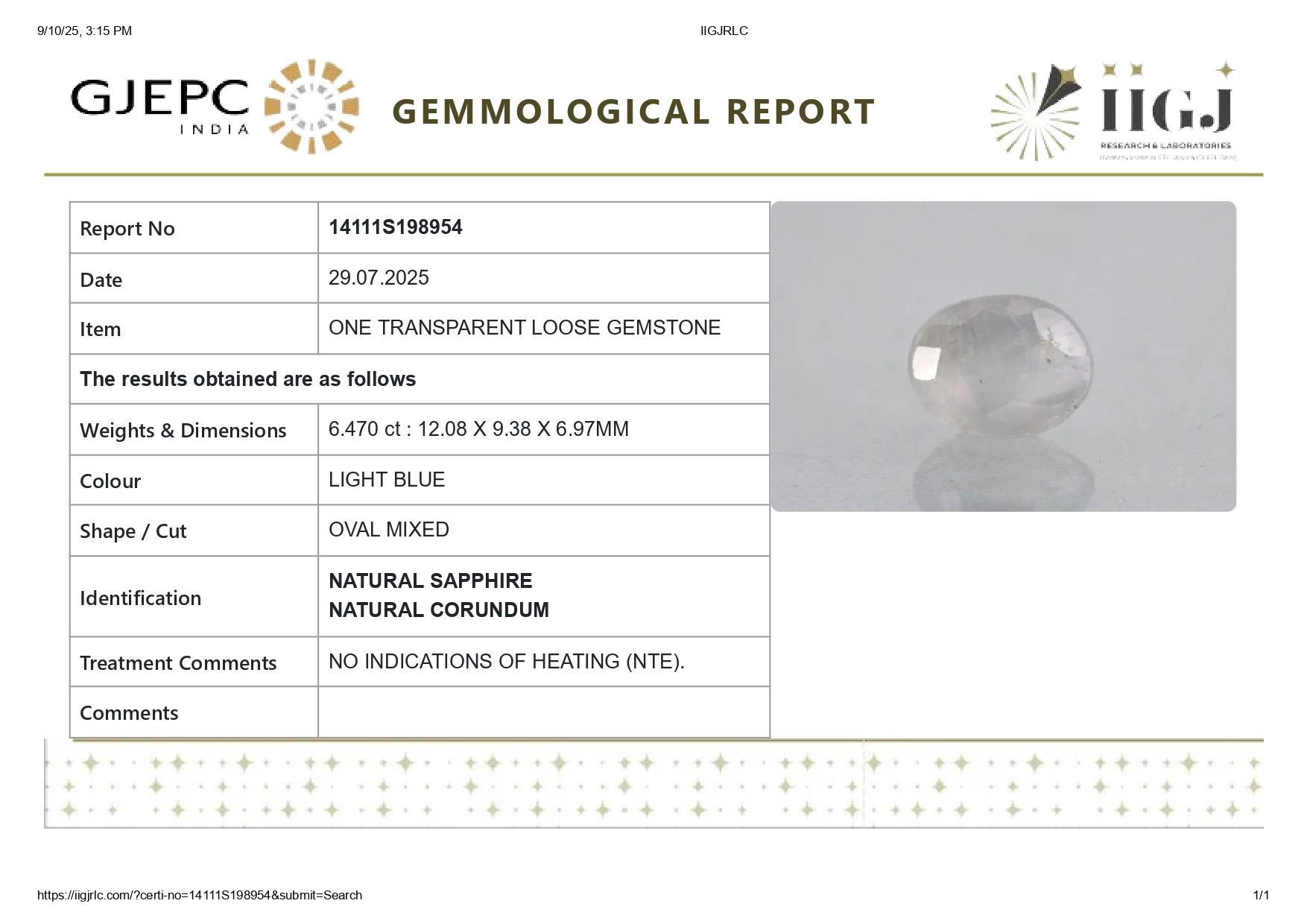 Buy one beautiful 6.47 carat/ 7.11 ratti pure blue sapphire.It has a Oval shape and a clarity grade of clean (evaluated at eye level), good intense color intensity. The origin of this neelam stone is sri-lanka(ceylon). This real blue sapphires is unheated & untreated and certified from IIGJ goverment lab.