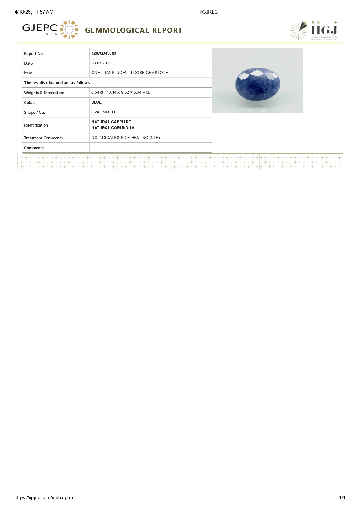 Buy one beautiful 6.54 carat/ 7.19 ratti pure blue sapphire.It has a oval shape and a clarity grade of clean (evaluated at eye level), good intense color intensity. The origin of this neelam stone is sri-lanka(ceylon). This real blue sapphires is unheated & untreated and certified from IIGJ goverment lab.