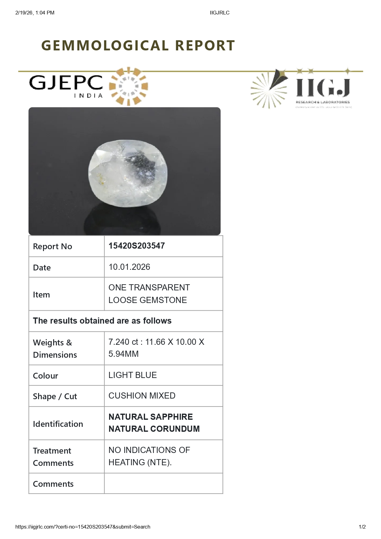 Buy one beautiful 7.24 carat/ 7.96 ratti pure blue sapphire.It has a cushion shape and a clarity grade of clean (evaluated at eye level), good intense color intensity. The origin of this neelam stone is sri-lanka(ceylon). This real blue sapphires is unheated & untreated and certified from IIGJ goverment lab.