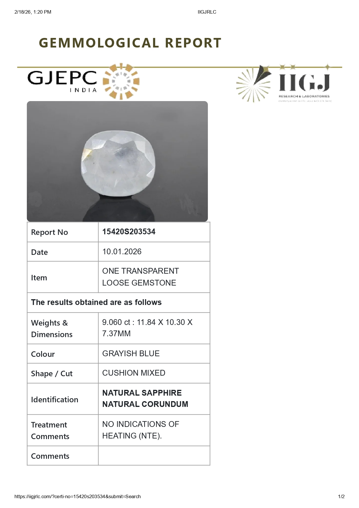 Buy one beautiful 9.06 carat/ 9.96 ratti pure blue sapphire.It has a cushion shape and a clarity grade of clean (evaluated at eye level), good intense color intensity. The origin of this neelam stone is sri-lanka(ceylon). This real blue sapphires is unheated & untreated and certified from IIGJ goverment lab.