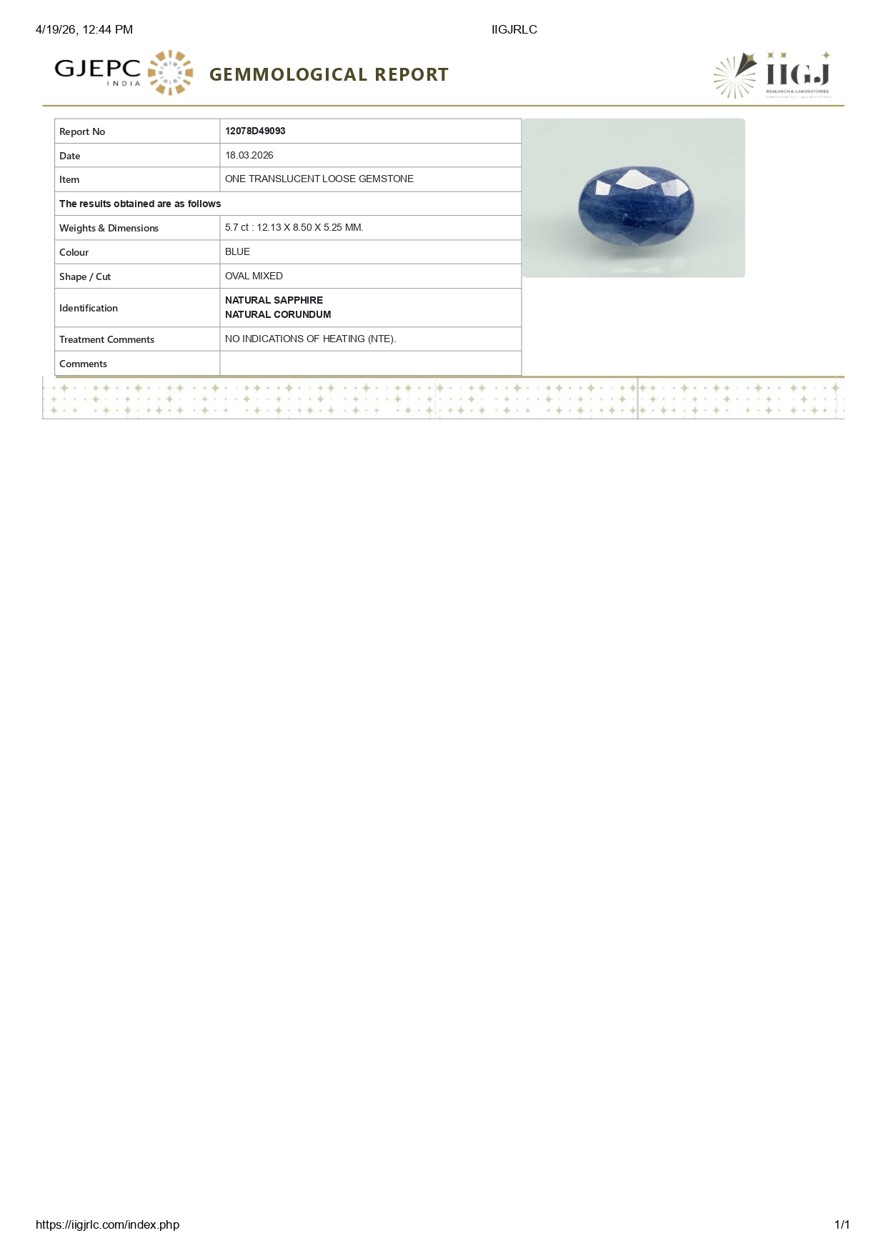 Buy one beautiful 5.70 carat/ 6.26 ratti pure blue sapphire.It has a oval shape and a clarity grade of clean (evaluated at eye level), good intense color intensity. The origin of this neelam stone is sri-lanka(ceylon). This real blue sapphires is unheated & untreated and certified from IIGJ goverment lab.