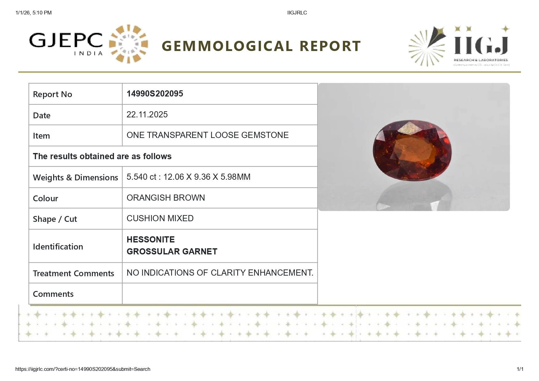 Buy Natural Original Gomed (Gomed Rasi Ratan) for sale online 5.54 carats (6.09 Ratti). The Stone origin (Where is found) is Sri-lanka. The Stone is known as Sri-lankan. Gomed has many benefits like Business, Finance, Career, Marriage, child conceive. For best astrological benefits stones is unheated, untreated 100% natural. The value of stones is good considering its properties and effects. The gem is IIGJ lab certified and its photos videos and certificates are available online.