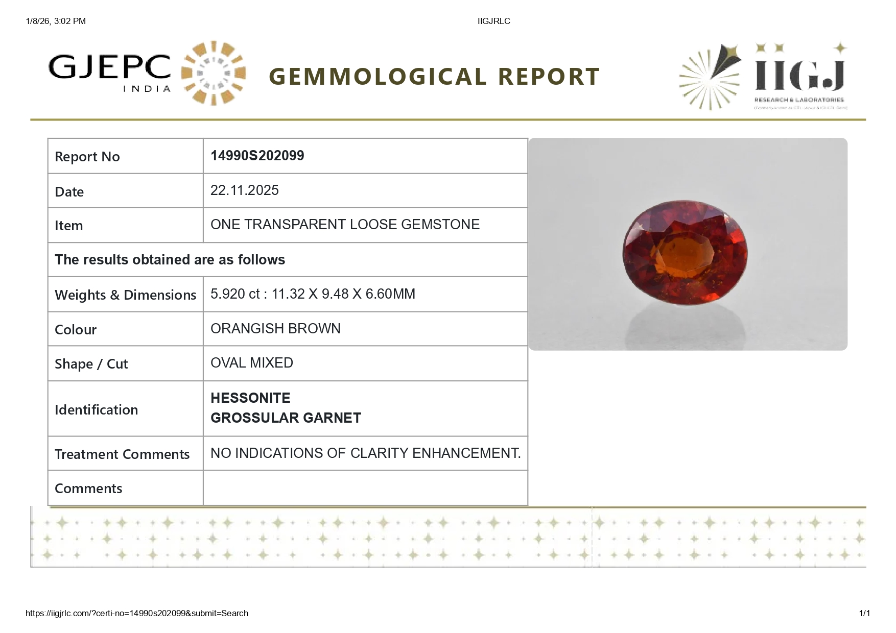Buy Natural Original Gomed (Gomed Rasi Ratan) for sale online 5.92 carats (6.51 Ratti). The Stone origin (Where is found) is Sri-lanka. The Stone is known as Sri-lankan. Gomed has many benefits like Business, Finance, Career, Marriage, child conceive. For best astrological benefits stones is unheated, untreated 100% natural. The value of stones is good considering its properties and effects. The gem is IIGJ lab certified and its photos videos and certificates are available online.