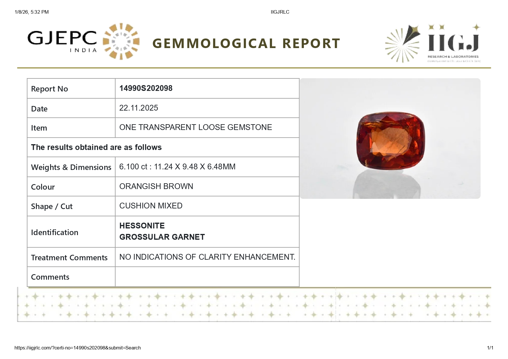 Buy Natural Original Gomed (Gomed Rasi Ratan) for sale online 6.10 carats (6.70 Ratti). The Stone origin (Where is found) is Sri-lanka. The Stone is known as Sri-lankan. Gomed has many benefits like Business, Finance, Career, Marriage, child conceive. For best astrological benefits stones is unheated, untreated 100% natural. The value of stones is good considering its properties and effects. The gem is IIGJ lab certified and its photos videos and certificates are available online.