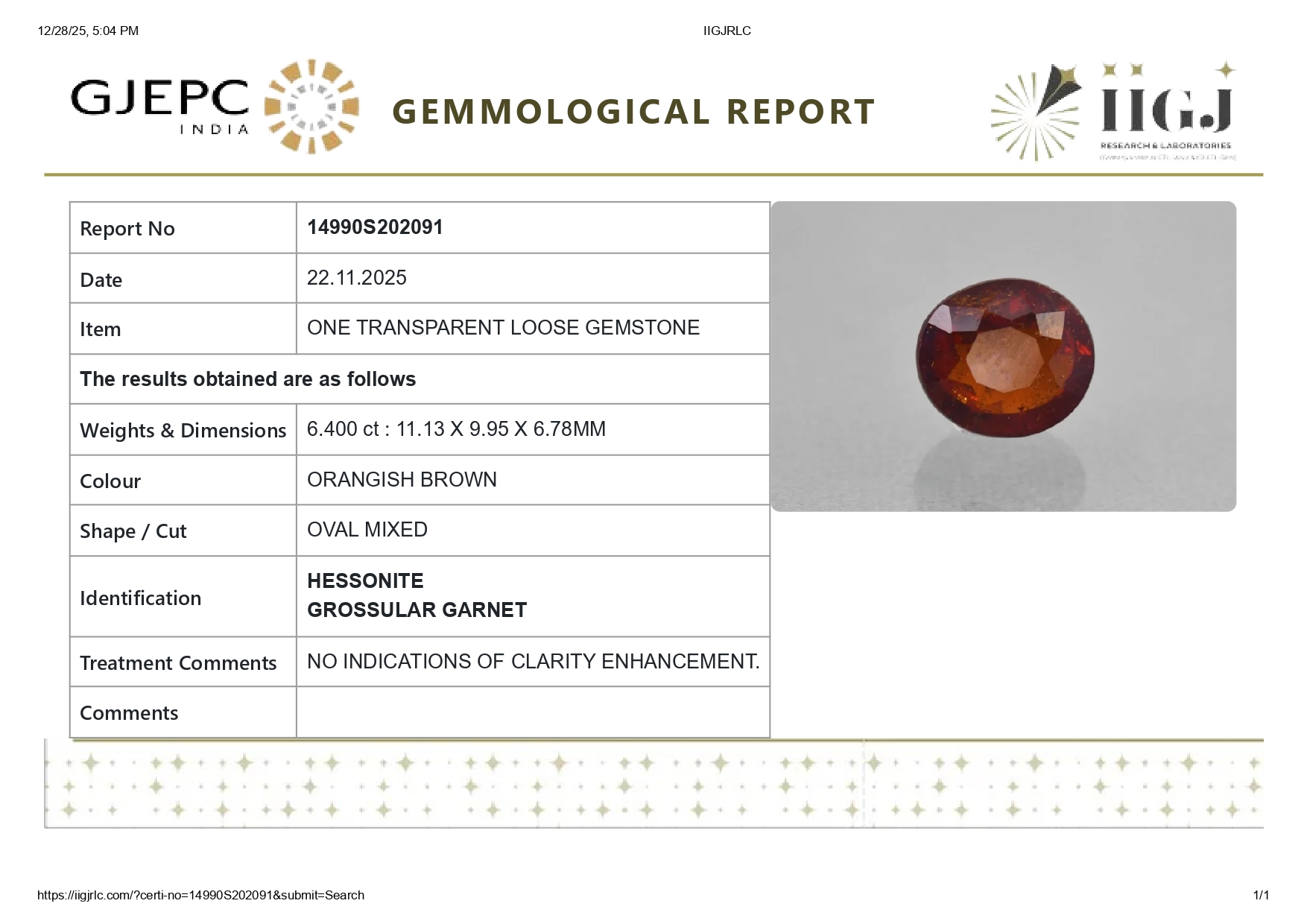 Buy Natural Original Gomed (Gomed Rasi Ratan) for sale online 6.40 carats (7.03 Ratti). The Stone origin (Where is found) is Sri-lanka. The Stone is known as Sri-lankan. Gomed has many benefits like Business, Finance, Career, Marriage, child conceive. For best astrological benefits stones is unheated, untreated 100% natural. The value of stones is good considering its properties and effects. The gem is IIGJ lab certified and its photos videos and certificates are available online.