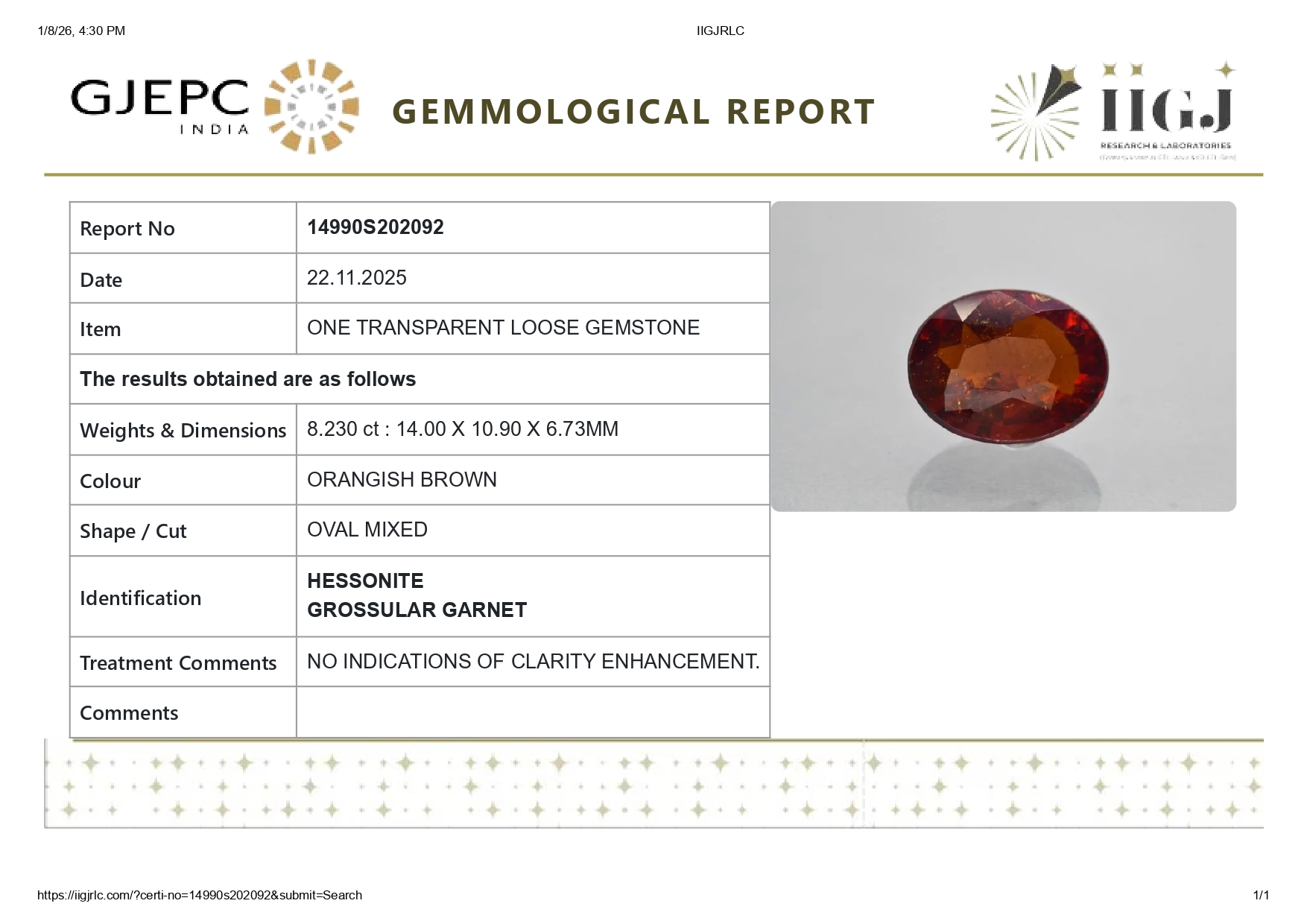 Buy Natural Original Gomed (Gomed Rasi Ratan) for sale online 8.23 carats (9.04 Ratti). The Stone origin (Where is found) is Sri-lanka. The Stone is known as Sri-lankan. Gomed has many benefits like Business, Finance, Career, Marriage, child conceive. For best astrological benefits stones is unheated, untreated 100% natural. The value of stones is good considering its properties and effects. The gem is IIGJ lab certified and its photos videos and certificates are available online.