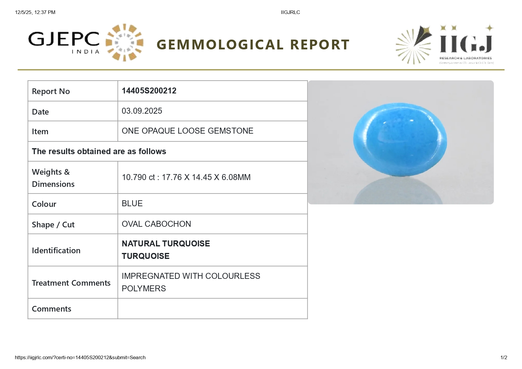 Buy one beautiful translucent 10.79 Carat/ 11.86 Ratti original Firoza stone online with premium quality and good color intensity. The origin of this Firoza stone is Iran.