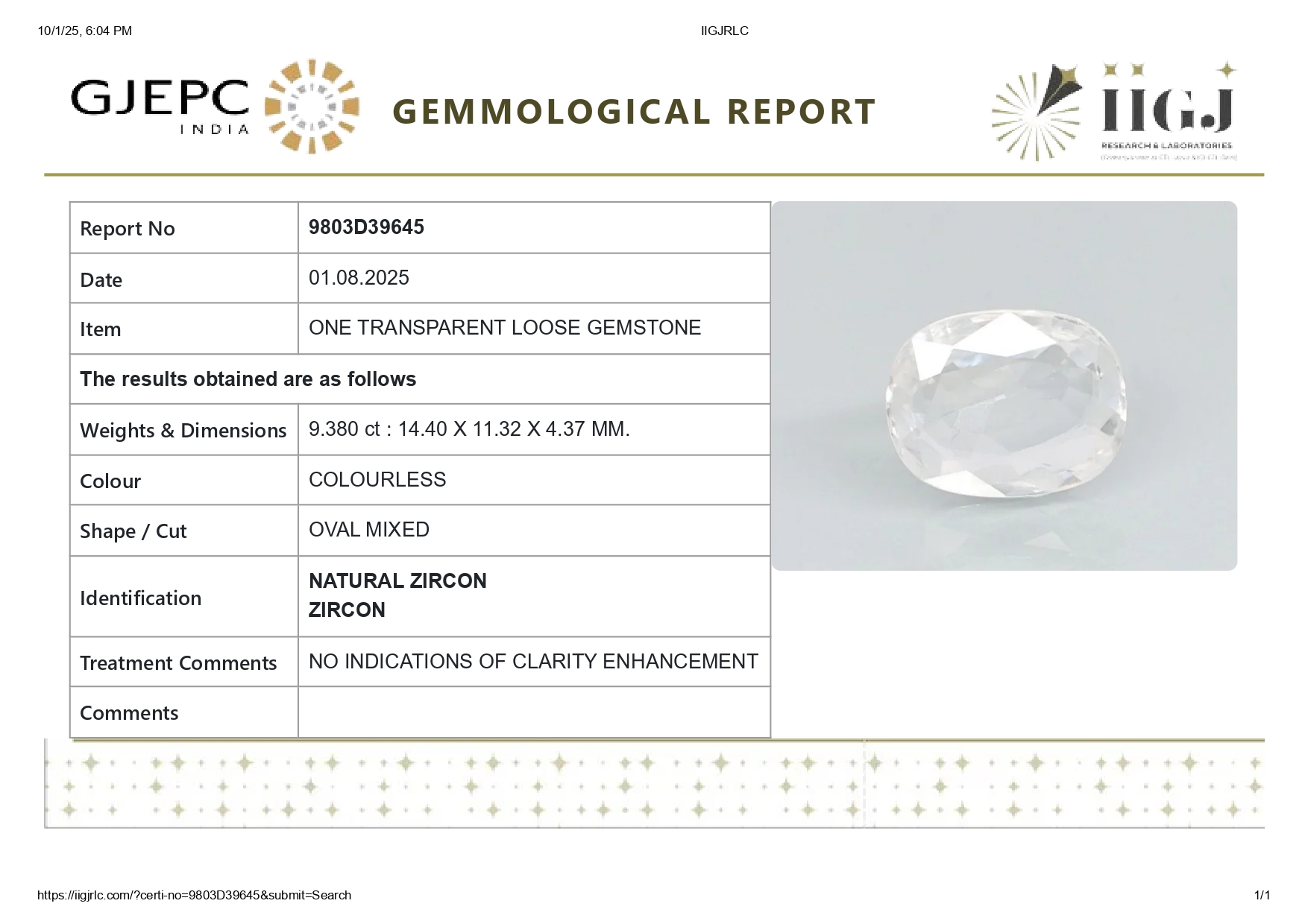 100% Original Natural Transparent White Zircon Gemstone Online with Govt Lab Certified Astrology and Vedic purpose only to make venus sunshine more powerful. Always Wear White Zircon in a ring, pendant, or bracelet form to brings success, wealth & happiness in life