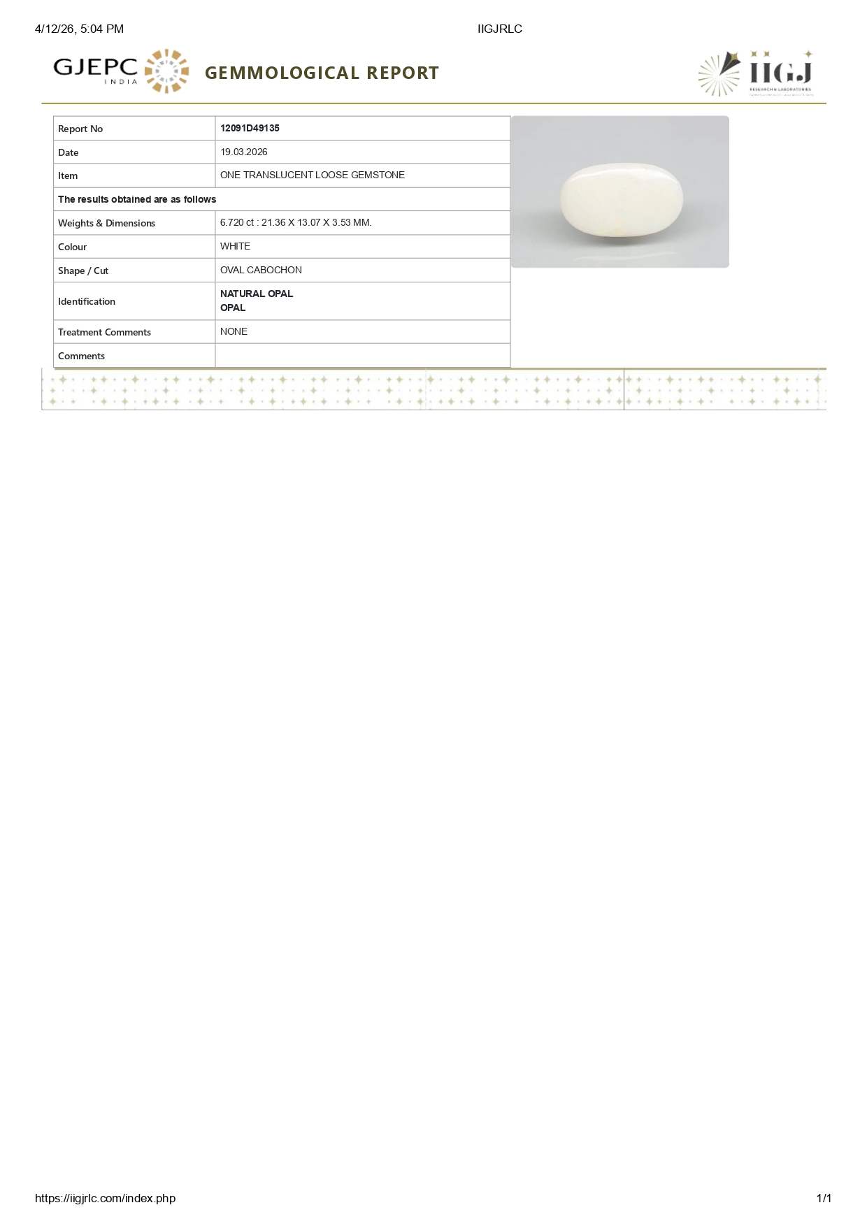 Stone Natural Buy Natural Original Opal (Doodhiya patthar) for sale online 6.72 carats (7.38 Ratti.The origin (where it is mined ) is Australia .Opal is a Light yellow coloured precious gemstone of the silicate mineral family. Opal works miraculously for the ascendant's of Venus (Shukra) Planet. Opal can be worn by people seeking benefits in Career, Marriage & Health & Luxury. The major sources of Opal are Australia & Ethiopia.