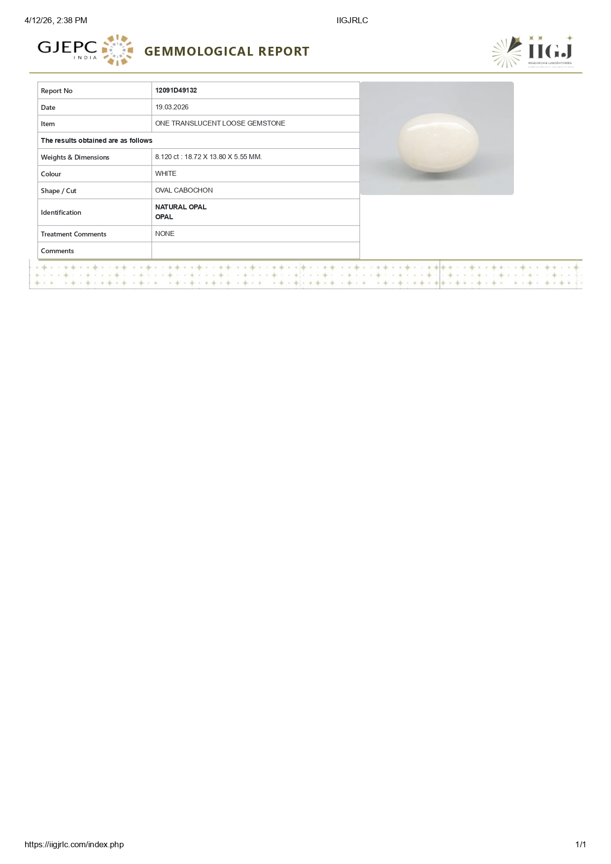Stone Natural Buy Natural Original Opal (Doodhiya patthar) for sale online 8.12 carats (8.92 Ratti.The origin (where it is mined ) is Australia .Opal is a Light yellow coloured precious gemstone of the silicate mineral family. Opal works miraculously for the ascendant's of Venus (Shukra) Planet. Opal can be worn by people seeking benefits in Career, Marriage & Health & Luxury. The major sources of Opal are Australia & Ethiopia.