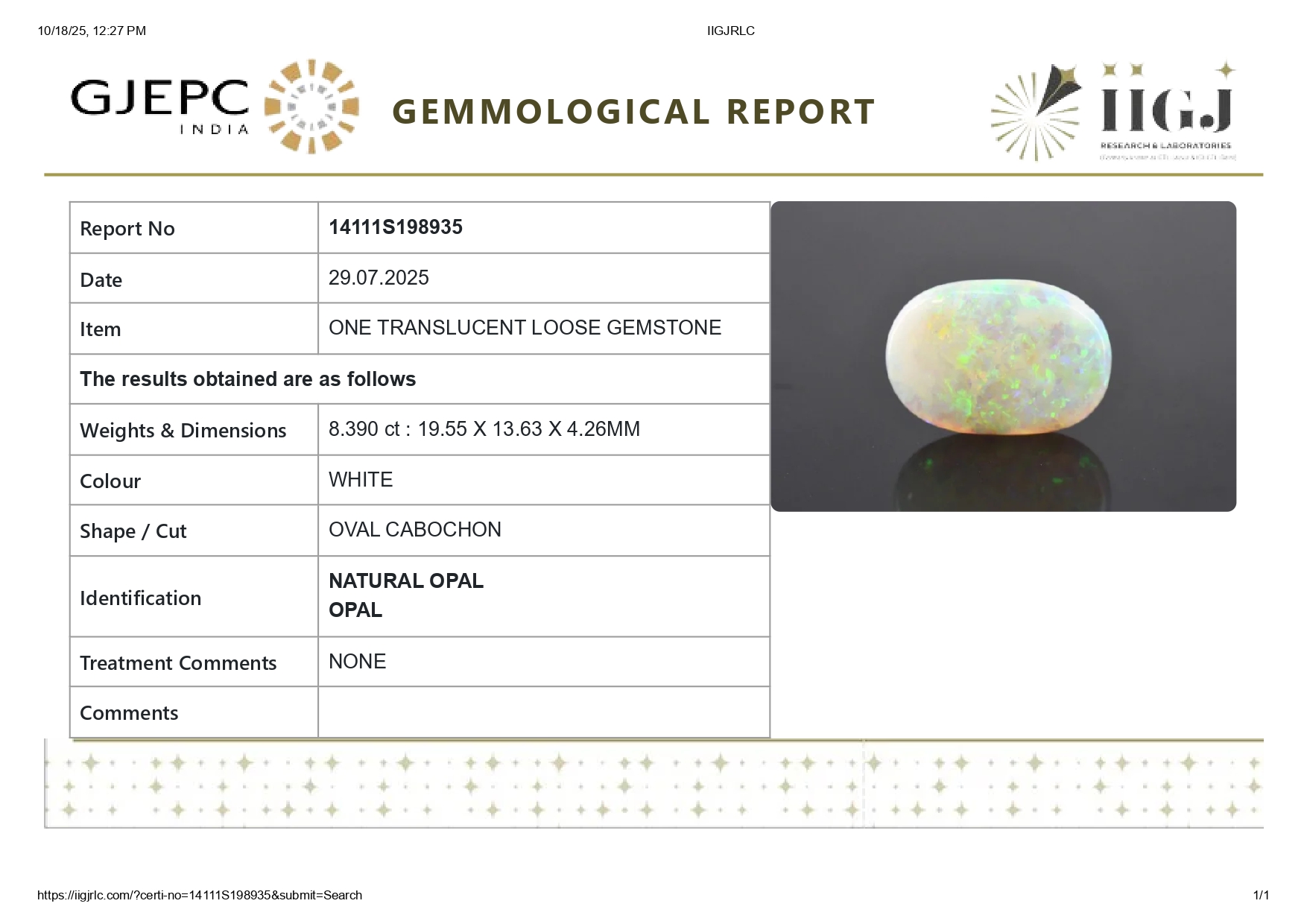 Stone Natural Buy Natural Original Opal (Doodhiya patthar) for sale online 8.39 carats (9.22 Ratti.The origin (where it is mined ) is Australia .Opal is a Light yellow coloured precious gemstone of the silicate mineral family. Opal works miraculously for the ascendant's of Venus (Shukra) Planet. Opal can be worn by people seeking benefits in Career, Marriage & Health & Luxury. The major sources of Opal are Australia & Ethiopia.