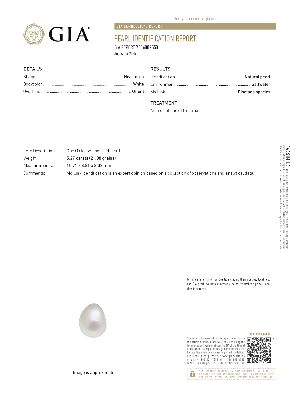 Buy 5.27 carats (5.79 Ratti) Natural Basra Pearl (Moti Rashi Ratna) Certified by GIA for sale online. Basra Pearl is one of the top quality among all pearls and it has many benefits. Basra Pearl contains powerful astrological importance in the Vedic astrology and is worn to calm the planet Moon in the wearer's birth chart and is extremely effective in Anger, Skin & Health.