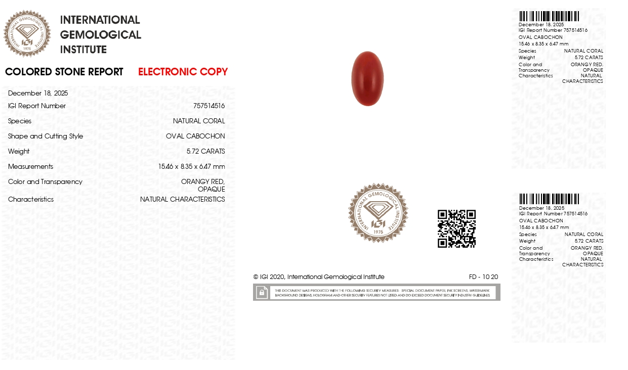 Buy 5.72 carats (6.29 Ratti) 100% natural japanese red coral (Moonga) stone online, directly imported from japan(also called "japanese Red Coral"). Moonga Stone is a source of enormous power & strength. Check out the exclusive inventory online available all shapes (Triangular, Capsule & Oval) with a reputed IGI certificate.