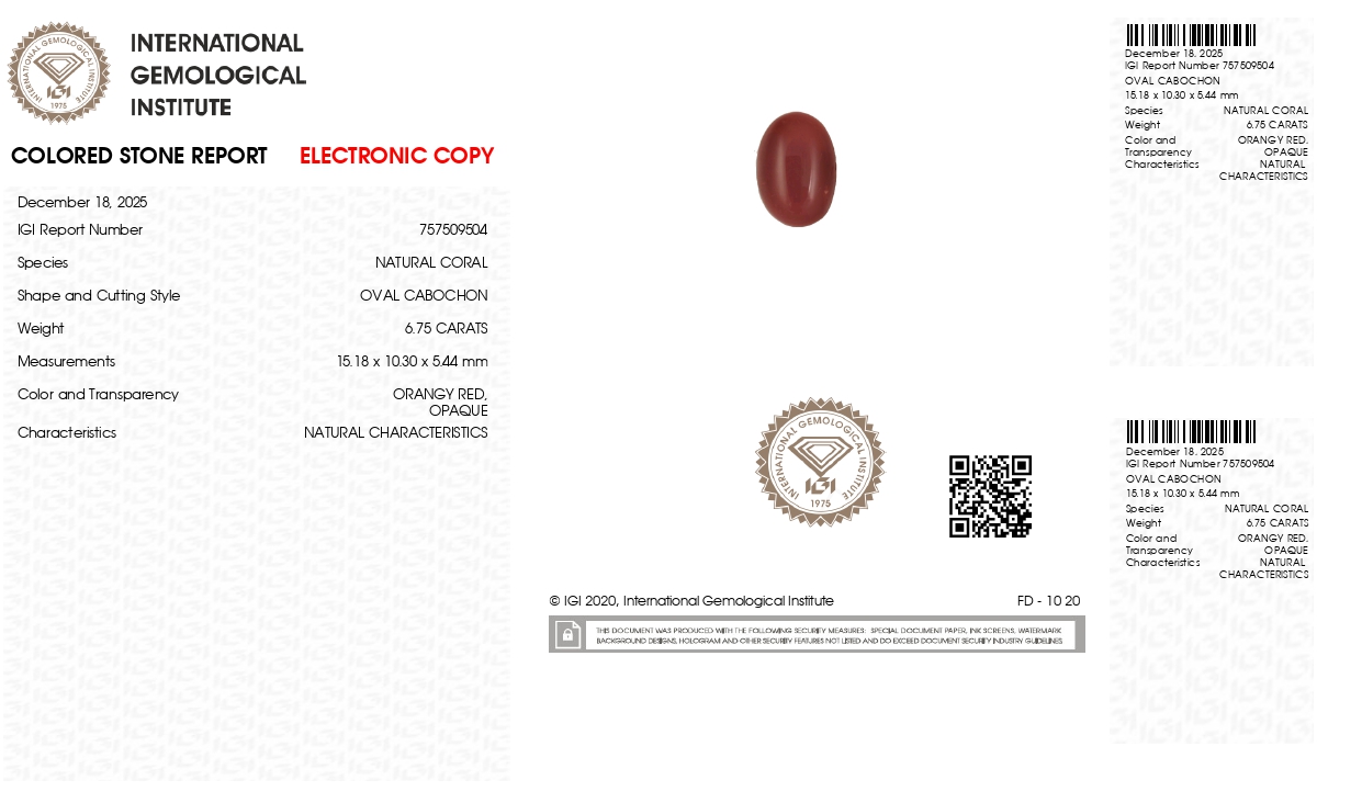 Buy 6.75 carats (7.42 Ratti) 100% natural japanese red coral (Moonga) stone online, directly imported from japan(also called "japanese Red Coral"). Moonga Stone is a source of enormous power & strength. Check out the exclusive inventory online available all shapes (Triangular, Capsule & Oval) with a reputed IGI certificate.
