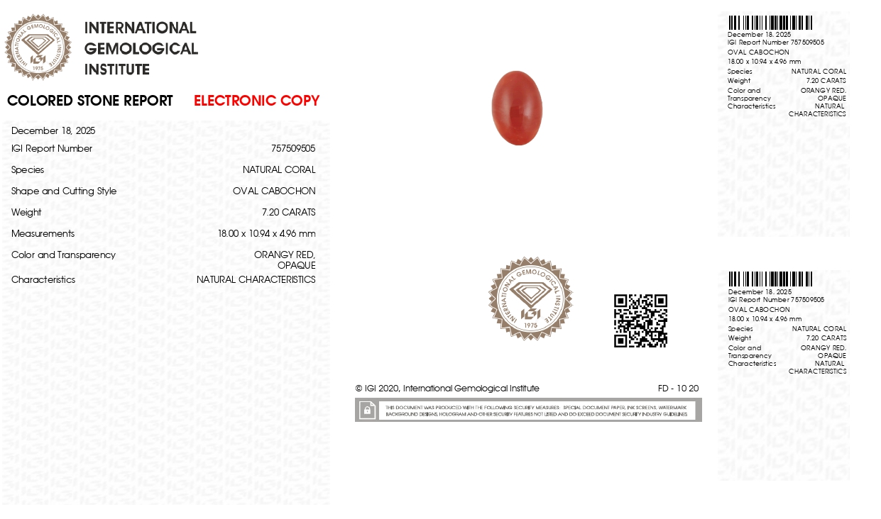 Buy 7.20 carats (7.91 Ratti) 100% natural japanese red coral (Moonga) stone online, directly imported from japan(also called "japanese Red Coral"). Moonga Stone is a source of enormous power & strength. Check out the exclusive inventory online available all shapes (Triangular, Capsule & Oval) with a reputed IGI certificate.