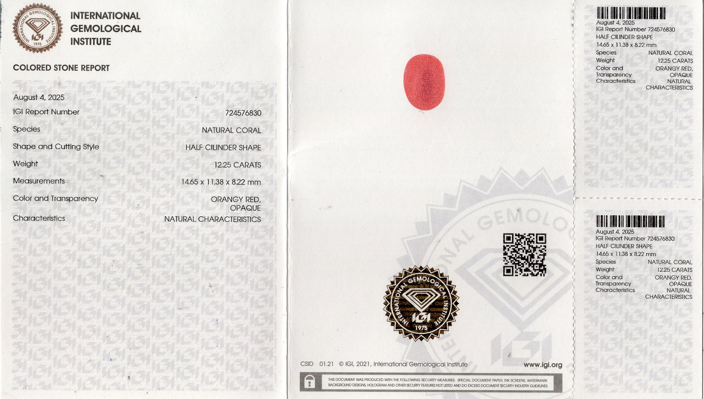 Buy 12.25 carats (13.46 Ratti) 100% natural Italian red coral (Moonga) stone online, directly imported from Italy (also called "Italian Red Coral"). Moonga Stone is a source of enormous power & strength. Check out the exclusive inventory online available all shapes (Triangular, Capsule & Oval) with a reputed IGI certificate.