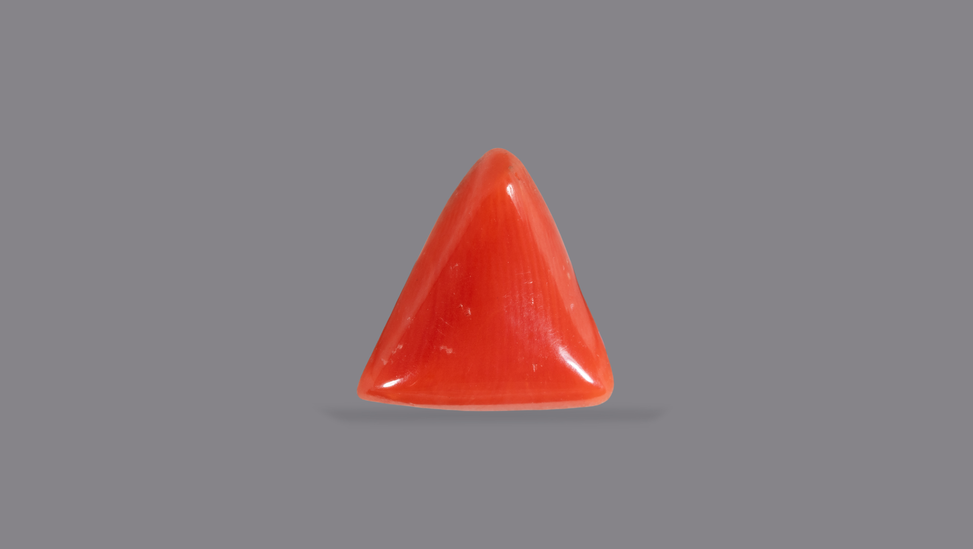 Buy 5.10 carats (5.60 Ratti) 100% natural Italian red coral (Moonga) stone online, directly imported from Italy (also called available"Italian Red Coral"). Moonga Stone is a source of enormous power & strength. Check out the exclusive inventory online all shapes (Triangular, Capsule & Oval) with a reputed IIGJ Certificate
