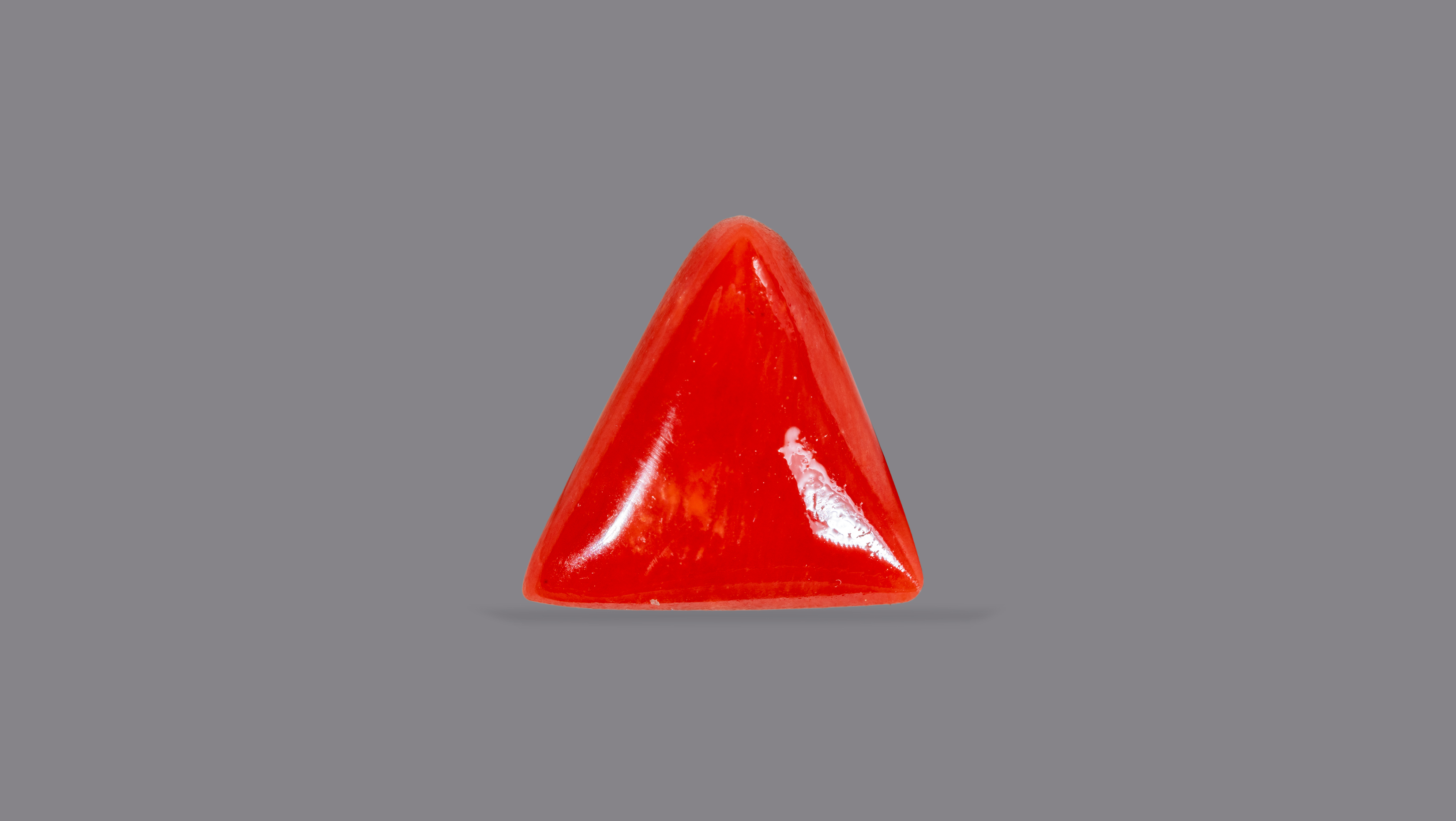 Buy 5.21 carats (5.73 Ratti) 100% natural Italian red coral (Moonga) stone online, directly imported from Italy (also called available"Italian Red Coral"). Moonga Stone is a source of enormous power & strength. Check out the exclusive inventory online all shapes (Triangular, Capsule & Oval) with a reputed IIGJ Certificate