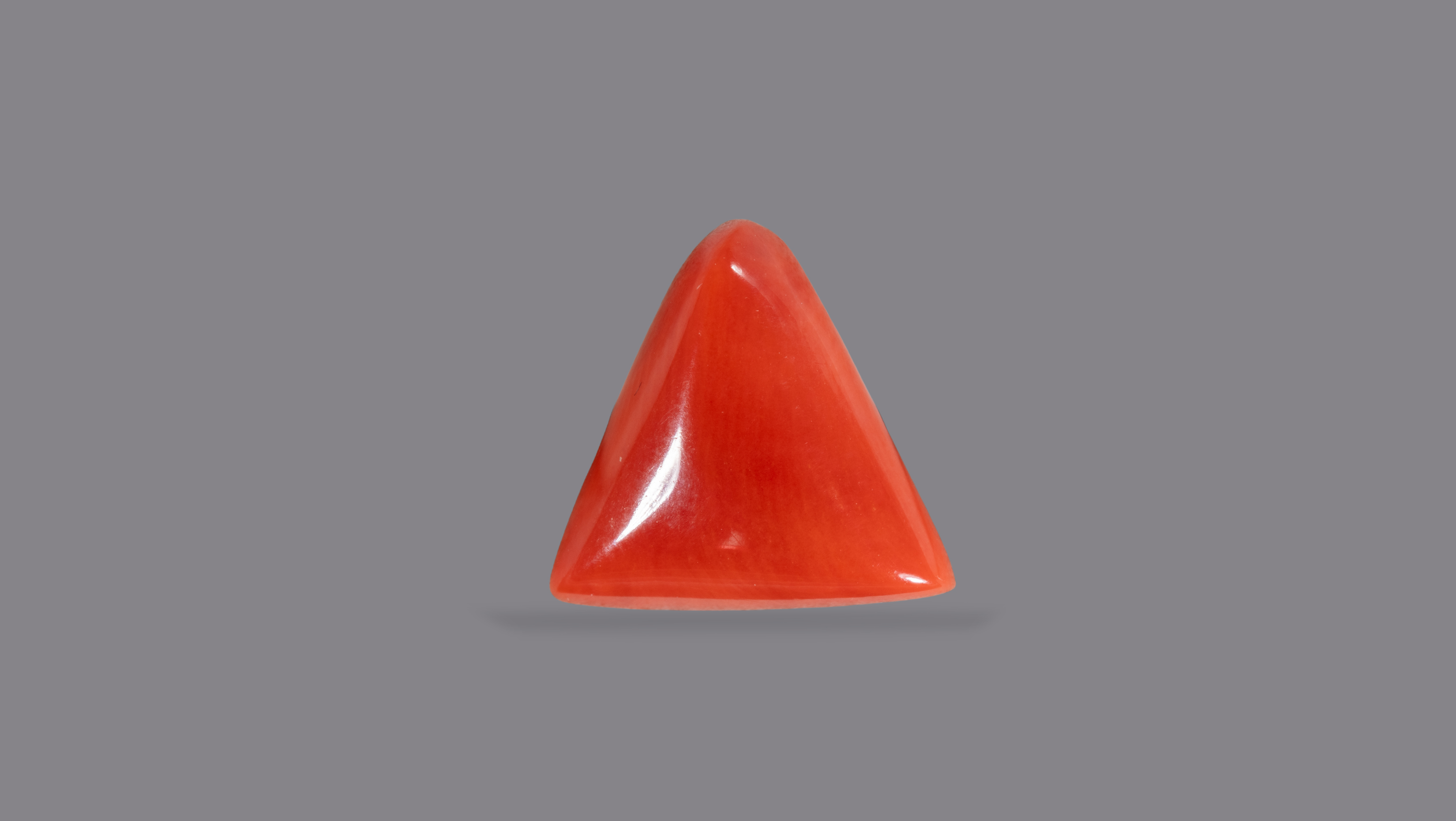 Buy 5.21 carats (5.73 Ratti) 100% natural Italian red coral (Moonga) stone online, directly imported from Italy (also called available"Italian Red Coral"). Moonga Stone is a source of enormous power & strength. Check out the exclusive inventory online all shapes (Triangular, Capsule & Oval) with a reputed IIGJ Certificate
