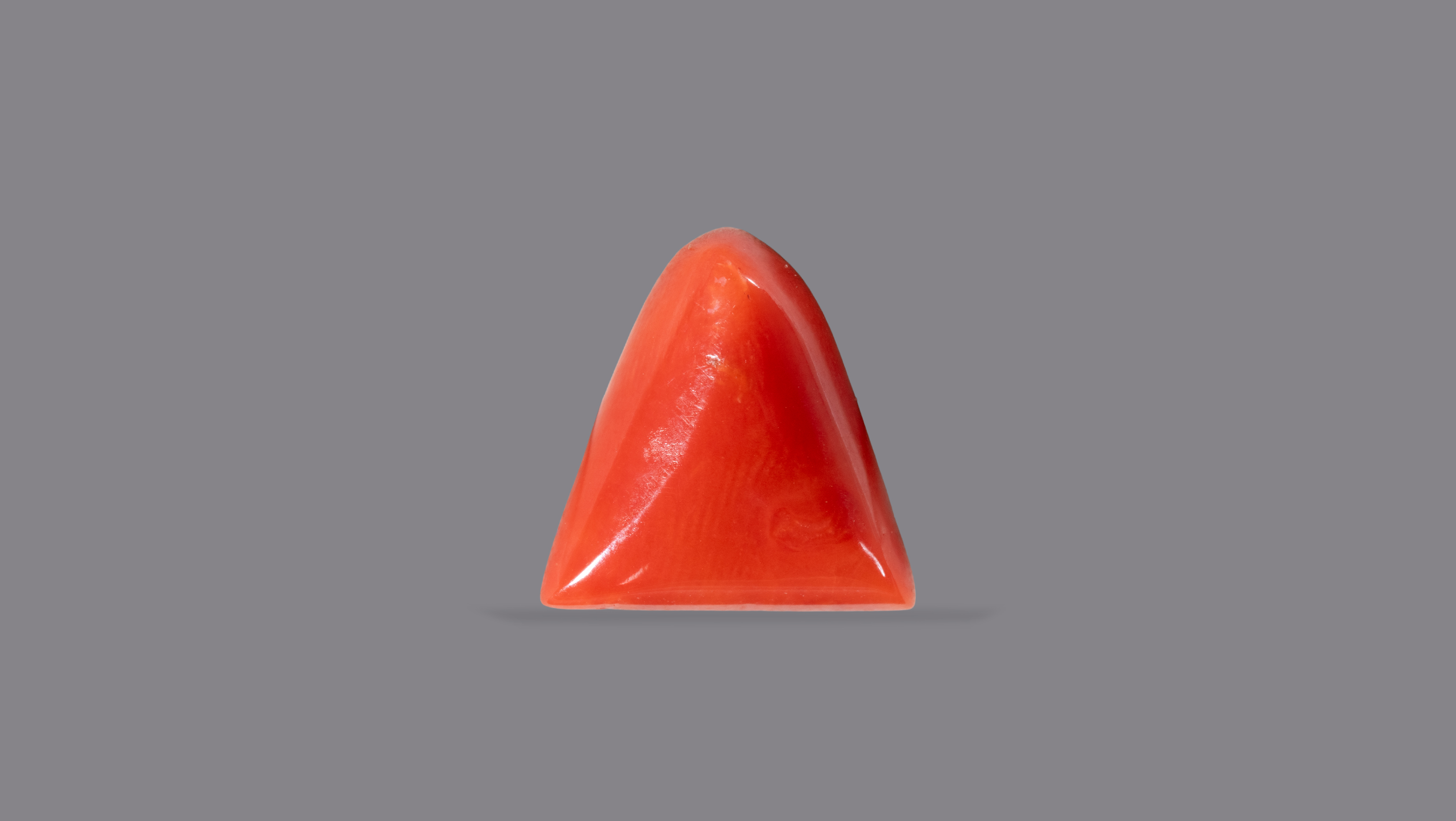 Buy 5.53 carats (6.08 Ratti) 100% natural Italian red coral (Moonga) stone online, directly imported from Italy (also called available"Italian Red Coral"). Moonga Stone is a source of enormous power & strength. Check out the exclusive inventory online all shapes (Triangular, Capsule & Oval) with a reputed IIGJ Certificate