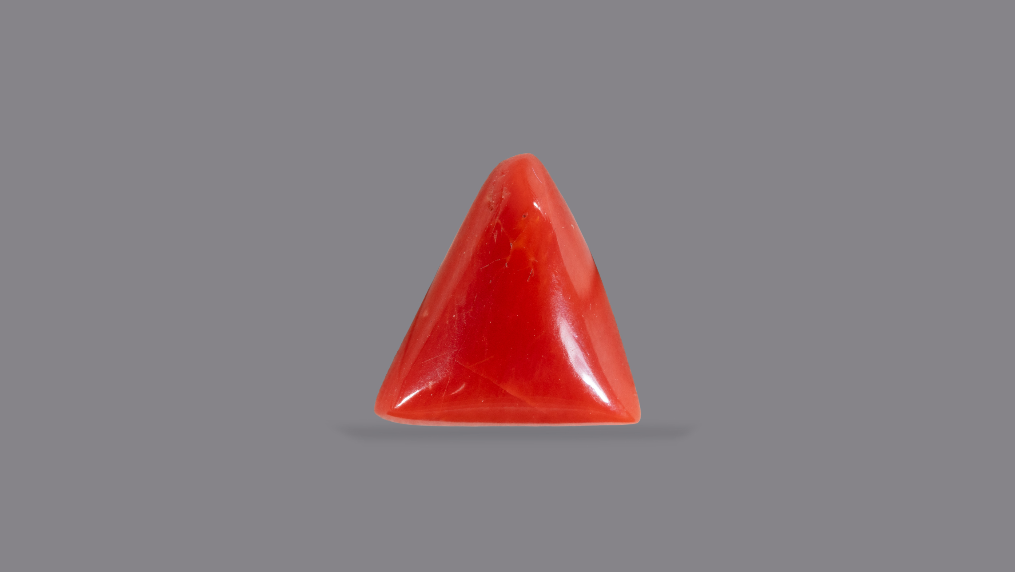 Buy 5.53 carats (6.08 Ratti) 100% natural Italian red coral (Moonga) stone online, directly imported from Italy (also called available"Italian Red Coral"). Moonga Stone is a source of enormous power & strength. Check out the exclusive inventory online all shapes (Triangular, Capsule & Oval) with a reputed IIGJ Certificate