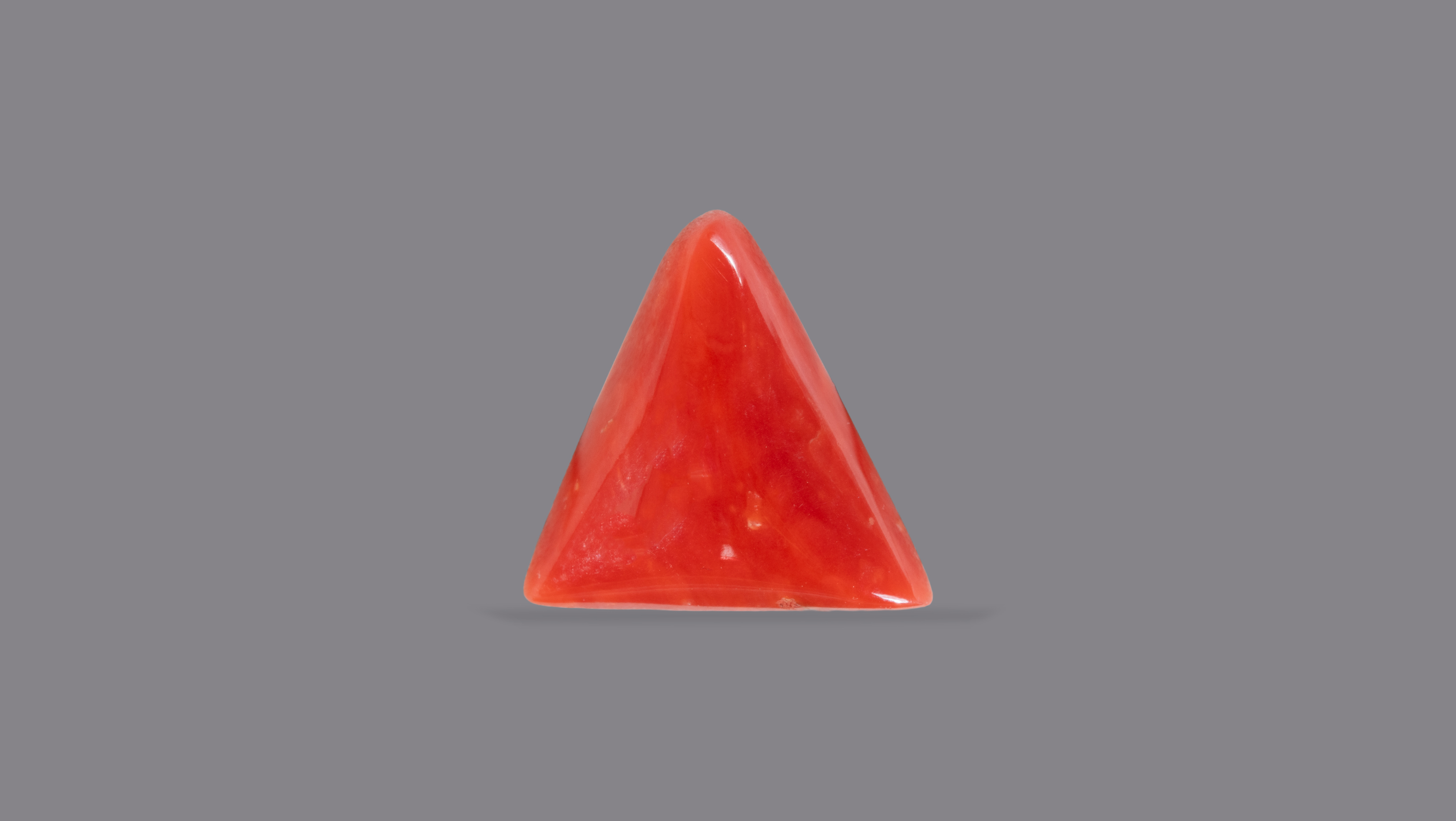 Buy 5.54 carats (7.19 Ratti) 100% natural Italian red coral (Moonga) stone online, directly imported from Italy (also called available"Italian Red Coral"). Moonga Stone is a source of enormous power & strength. Check out the exclusive inventory online all shapes (Triangular, Capsule & Oval) with a reputed IIGJ Certificate