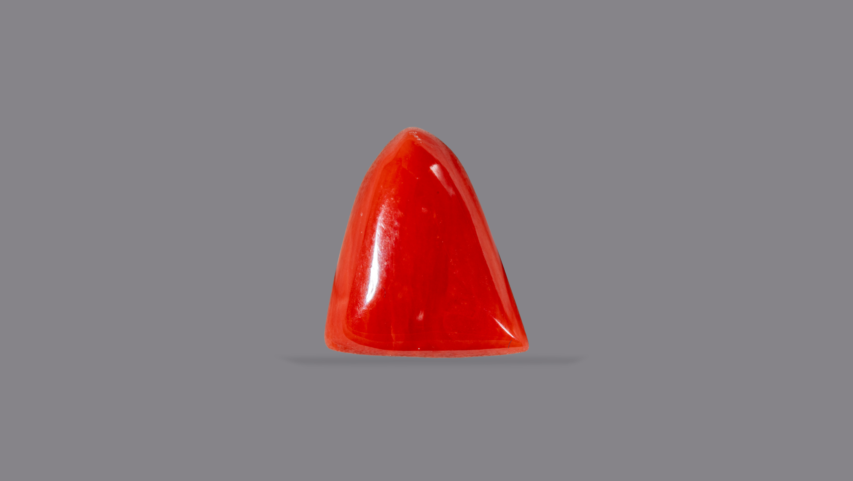 Buy 6.05 carats (6.65 Ratti) 100% natural Italian red coral (Moonga) stone online, directly imported from Italy (also called available"Italian Red Coral"). Moonga Stone is a source of enormous power & strength. Check out the exclusive inventory online all shapes (Triangular, Capsule & Oval) with a reputed IIGJ Certificate