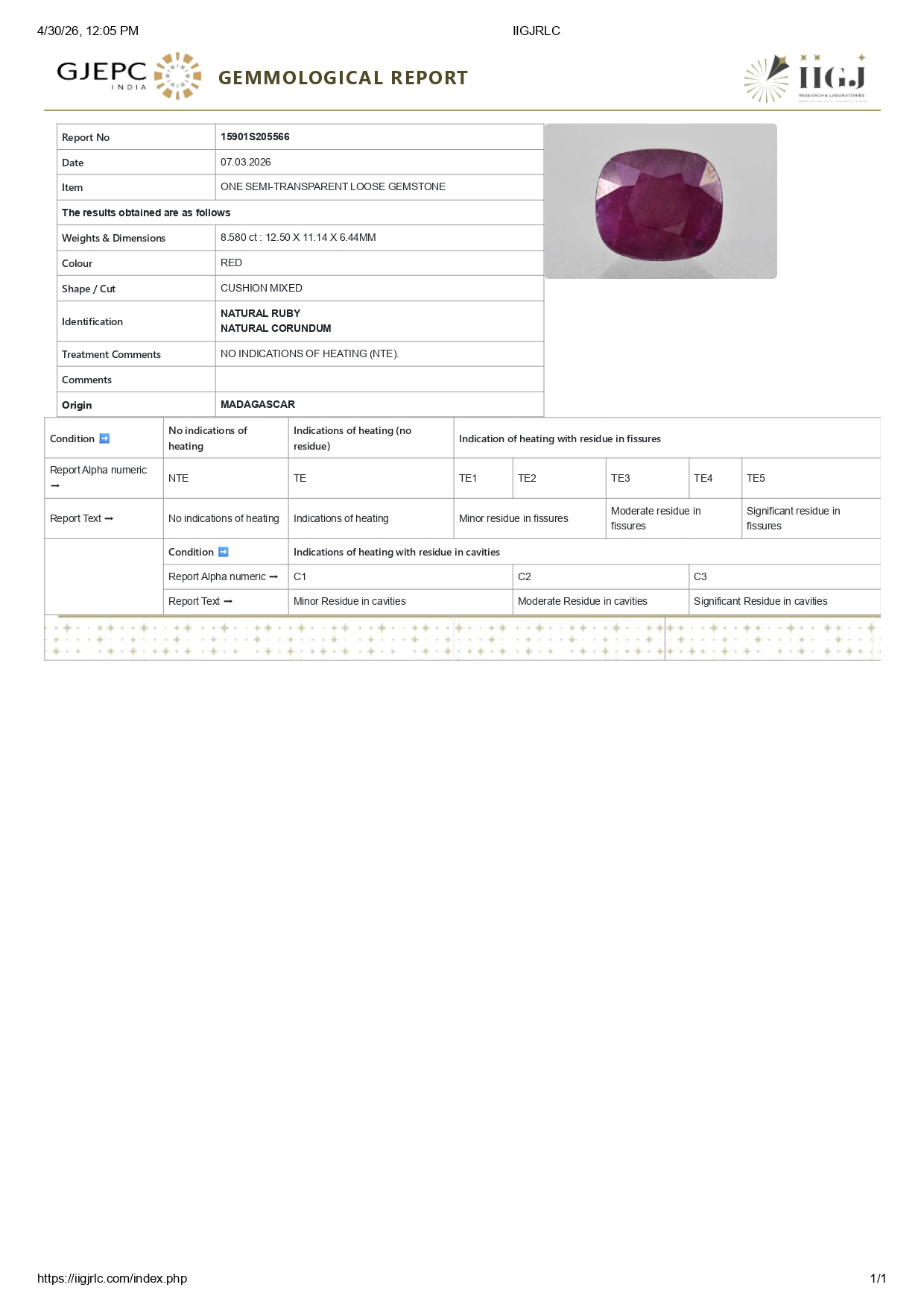 Buy one beautiful Semi-transparent 8.58 ct/ 9.43 Ratti Original Ruby. It has a cushion shape, and a clarity grade of eye clean (evaluated at eye level), Purplish-Red Color intensity, and an excellent polish. The origin of this ruby is Madagascar. This stone is unheated & untreated and certified from IIGJ Lab.