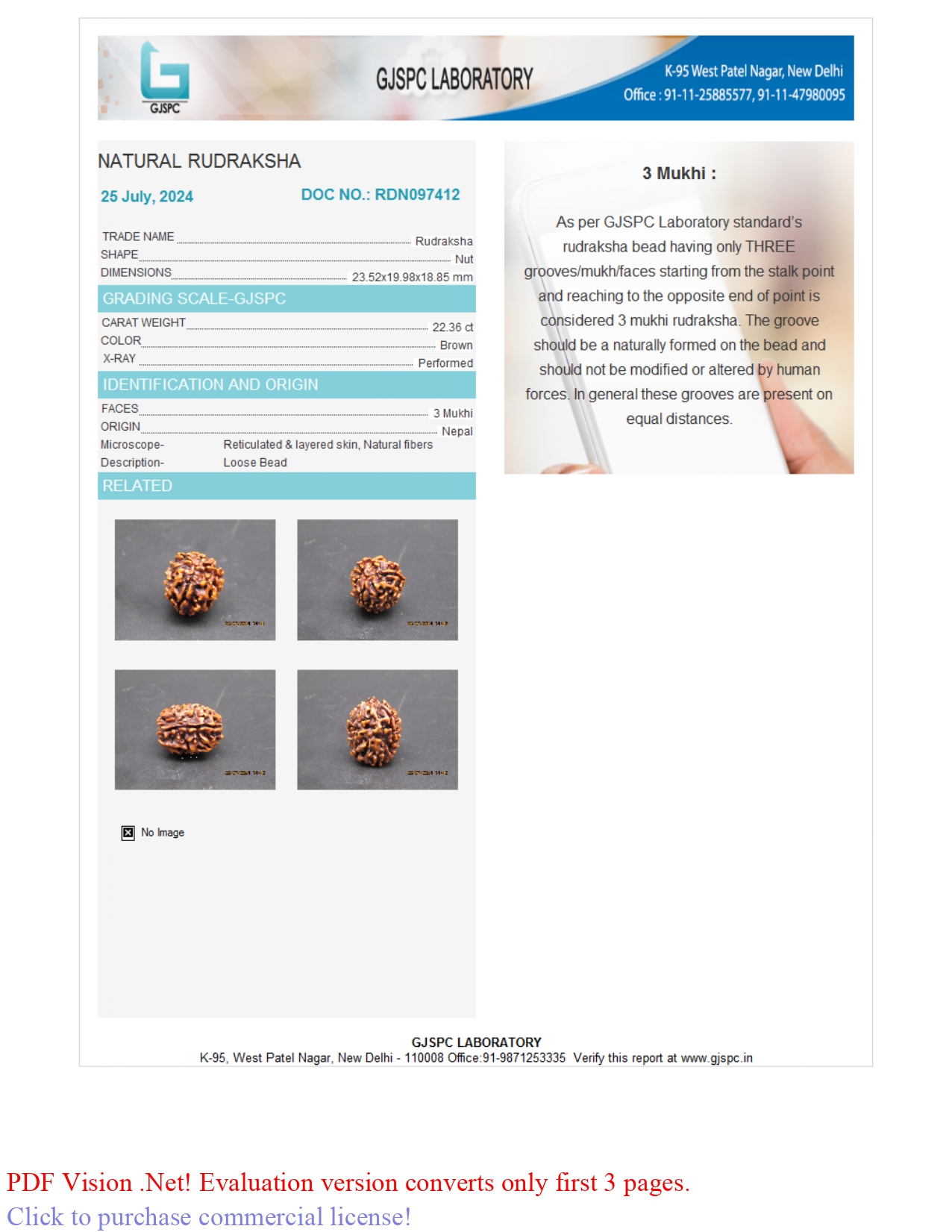 Buy 100% original and lab-certified with Xray report 3 Mukhi / 3 Faces Rudraksha (23.52 mm) online at the best price from trusted Brahma Gems. All 3 Mukhi Rudraksha are 100% genuine from Nepal origin.