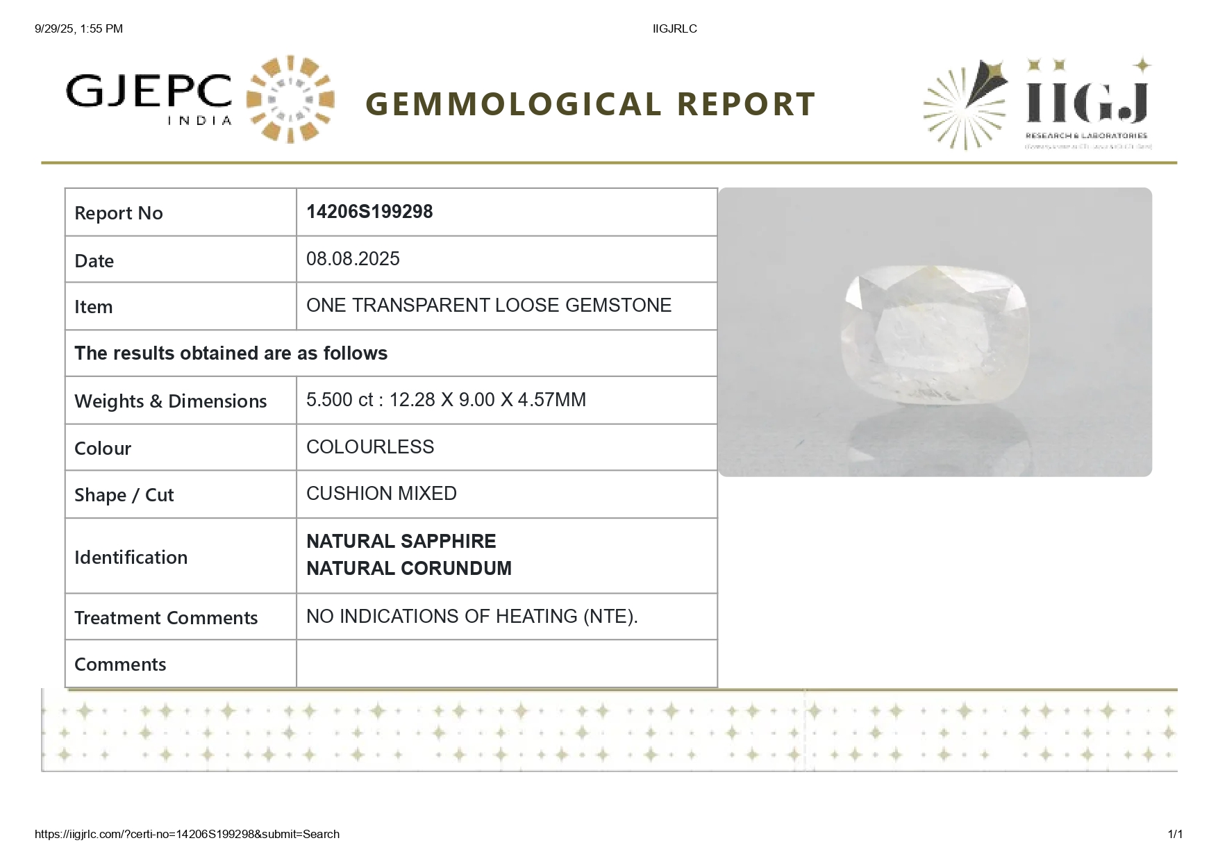 Buy 5.50 Carats (6.04 Ratti) original, unheated & untreated White Sapphire (Safed Pukhraj) for sale online. This white sapphire is imported from ceylon or sri-lankan mines. That's why it is also known as "Ceylon or Sri-Lankan White Sapphire. A white sapphire has many benefits and specially recommended for Business, Finance, Career, Marriage, Child Conceive & many more. All real white sapphire stones are certified from IIGJ/IGI govt labs. Actual photos, videos and certificates can be seen online here.