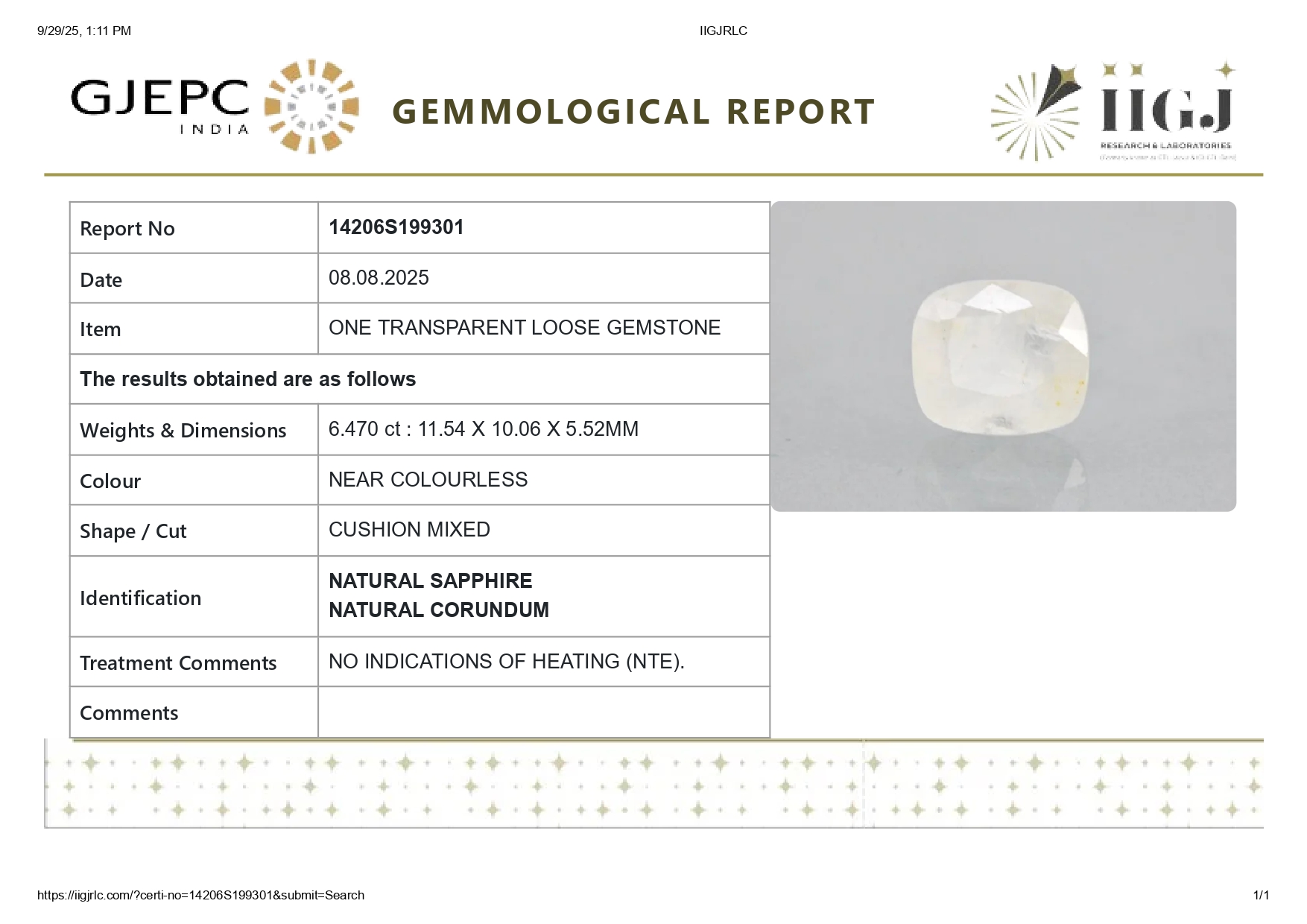 Buy 6.47 Carats (7.11 Ratti) original, unheated & untreated White Sapphire (Safed Pukhraj) for sale online. This white sapphire is imported from ceylon or sri-lankan mines. That's why it is also known as "Ceylon or Sri-Lankan White Sapphire. A white sapphire has many benefits and specially recommended for Business, Finance, Career, Marriage, Child Conceive & many more. All real white sapphire stones are certified from IIGJ/IGI govt labs. Actual photos, videos and certificates can be seen online here.