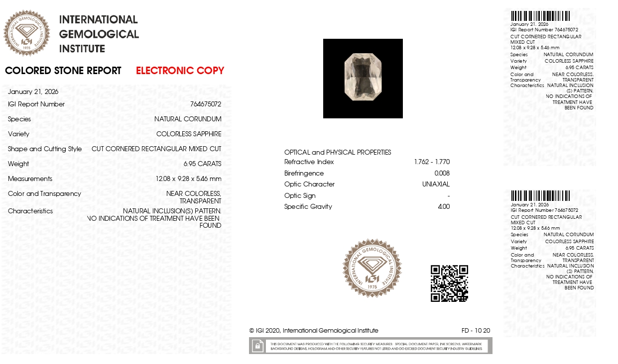 Buy 6.95 Carats (7.64 Ratti) original, unheated & untreated White Sapphire (Safed Pukhraj) for sale online. This white sapphire is imported from ceylon or sri-lankan mines. That's why it is also known as "Ceylon or Sri-Lankan White Sapphire. A white sapphire has many benefits and specially recommended for Business, Finance, Career, Marriage, Child Conceive & many more. All real white sapphire stones are certified from IIGJ/IGI govt labs. Actual photos, videos and certificates can be seen online here.