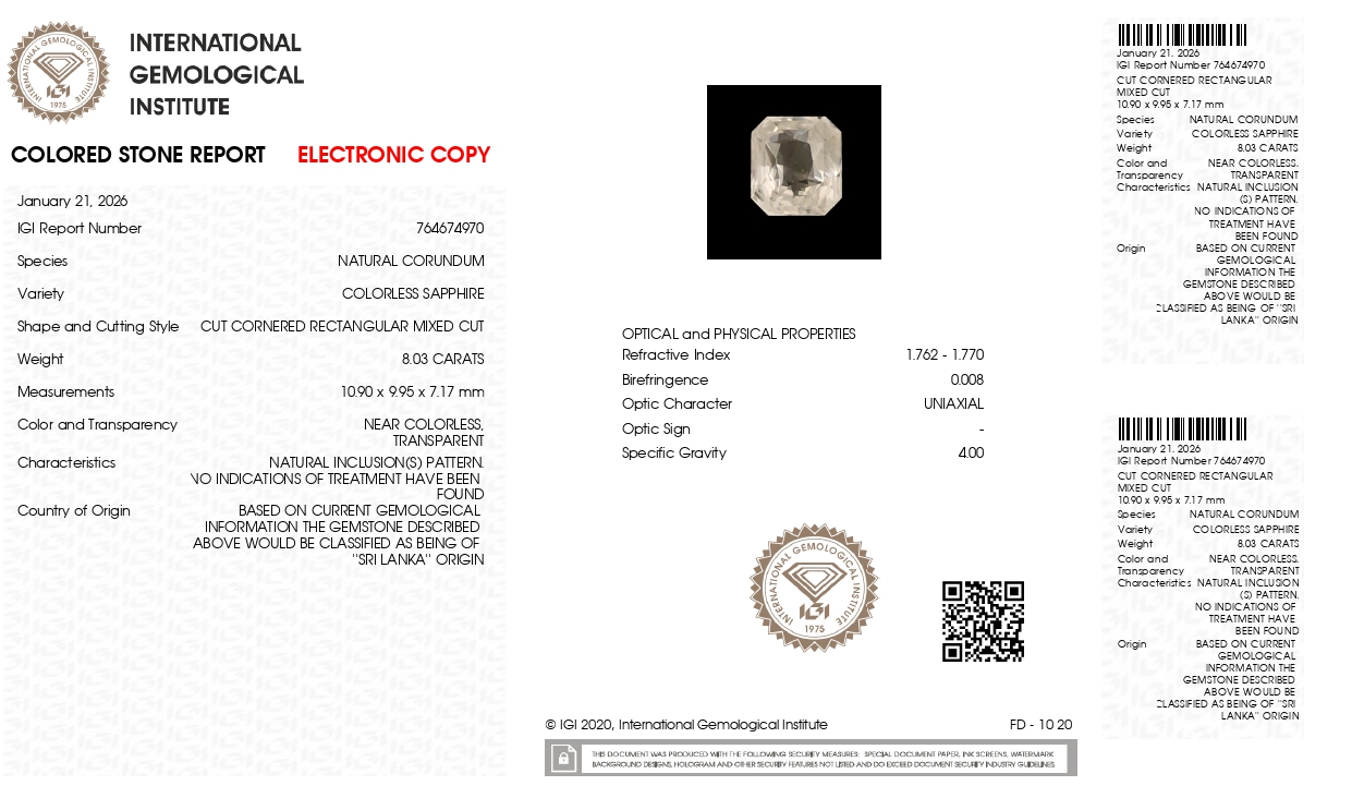 Buy 8.03 Carats (8.82 Ratti) original, unheated & untreated White Sapphire (Safed Pukhraj) for sale online. This white sapphire is imported from ceylon or sri-lankan mines. That's why it is also known as "Ceylon or Sri-Lankan White Sapphire. A white sapphire has many benefits and specially recommended for Business, Finance, Career, Marriage, Child Conceive & many more. All real white sapphire stones are certified from IIGJ/IGI govt labs. Actual photos, videos and certificates can be seen online here.