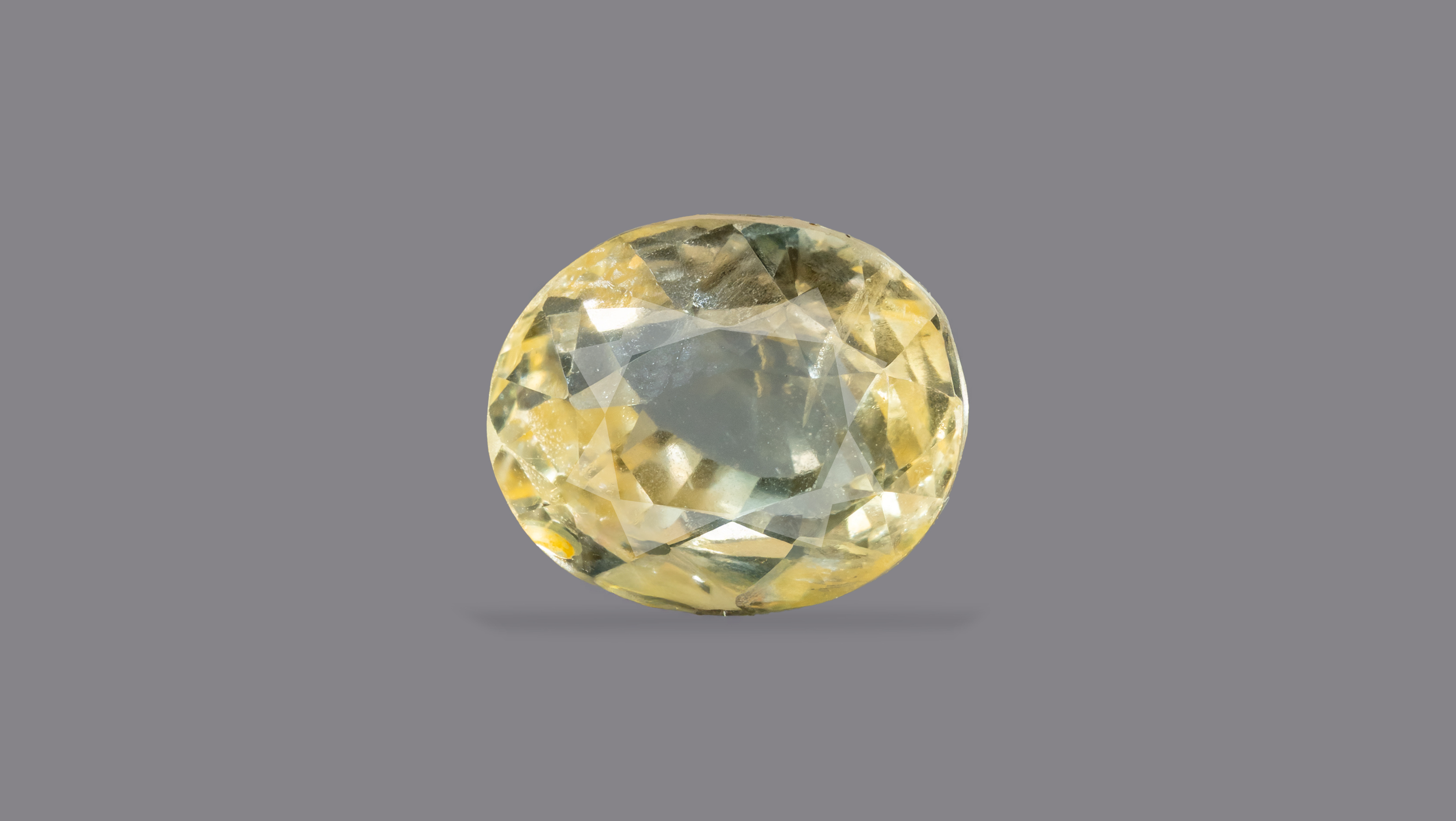Buy one beautiful transparent 4.06 Carat/ 4.46 Ratti original yellow sapphire stone online with the dimensions of 9.11 x 7.61 x 5.99 mm. It has a oval shape, and a clarity grade of eye clean (evaluated at eye level), with good color intensity. The origin of this real yellow sapphire (pukhraj) stone is Ceylon(Sri Lanka). This yellow sapphires is 100% unheated & untreated and certified from IGI Govt. Lab.