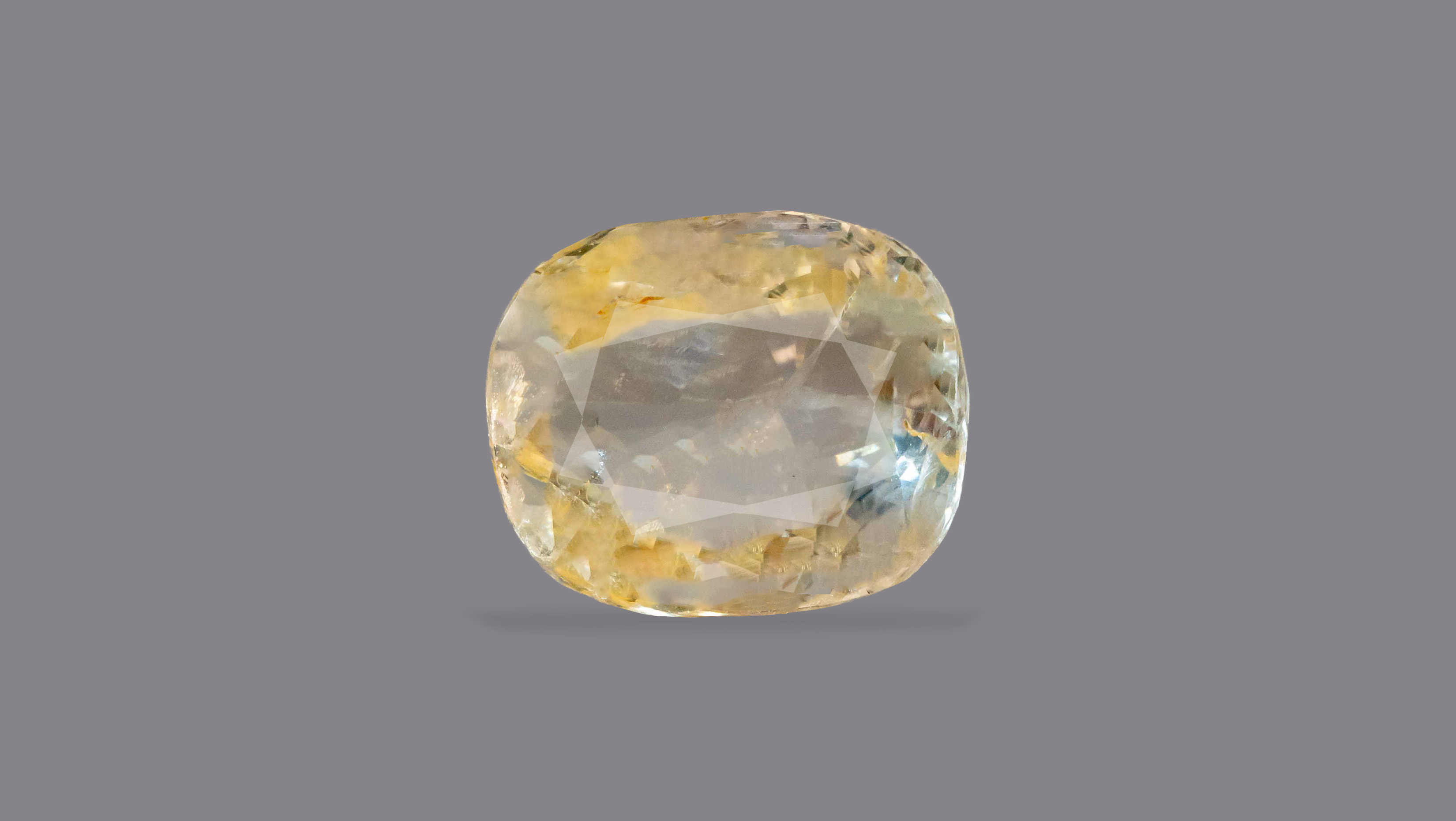 Buy one beautiful transparent 4.76 Carat/ 5.23 Ratti original yellow sapphire stone online.It has a Cushion shape, and a clarity grade of eye clean (evaluated at eye level), with good color intensity. The origin of this real yellow sapphire(pukhraj) stone is Ceylon(Sri Lanka). This yellow sapphires is 100% unheated & untreated and certified from IGI Lab.