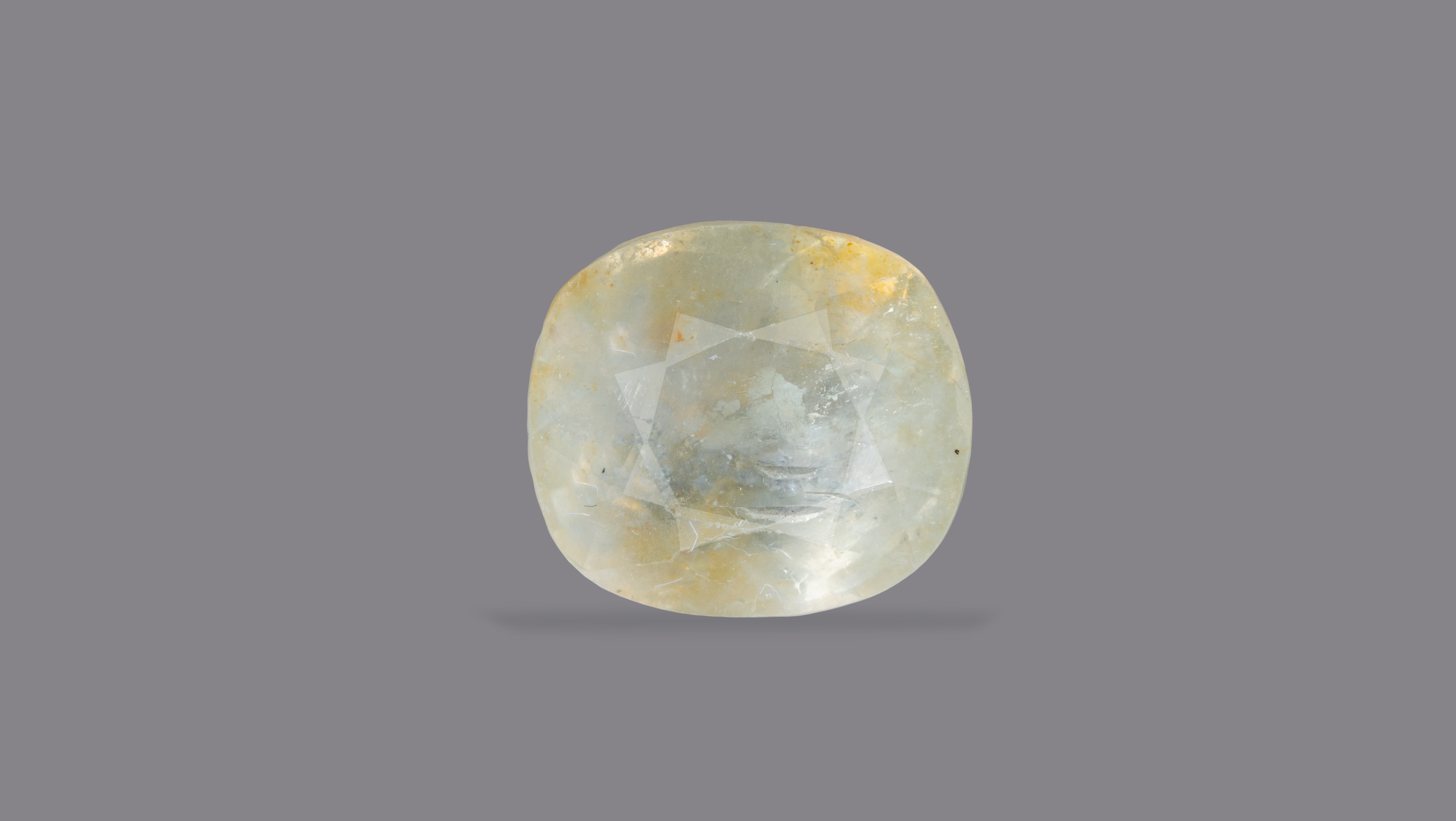 Buy one beautiful transparent 6.96 Carat/ 7.65 Ratti original yellow sapphire stone online . It has a cushion shape, and a clarity grade of eye clean (evaluated at eye level), with good color intensity. The origin of this real yellow sapphire(pukhraj) stone is Ceylon(Sri Lanka). This yellow sapphires is 100% unheated & untreated and certified from IIGJ Govt. Lab.
